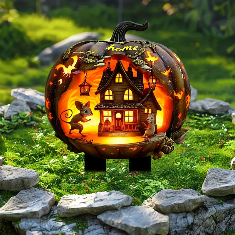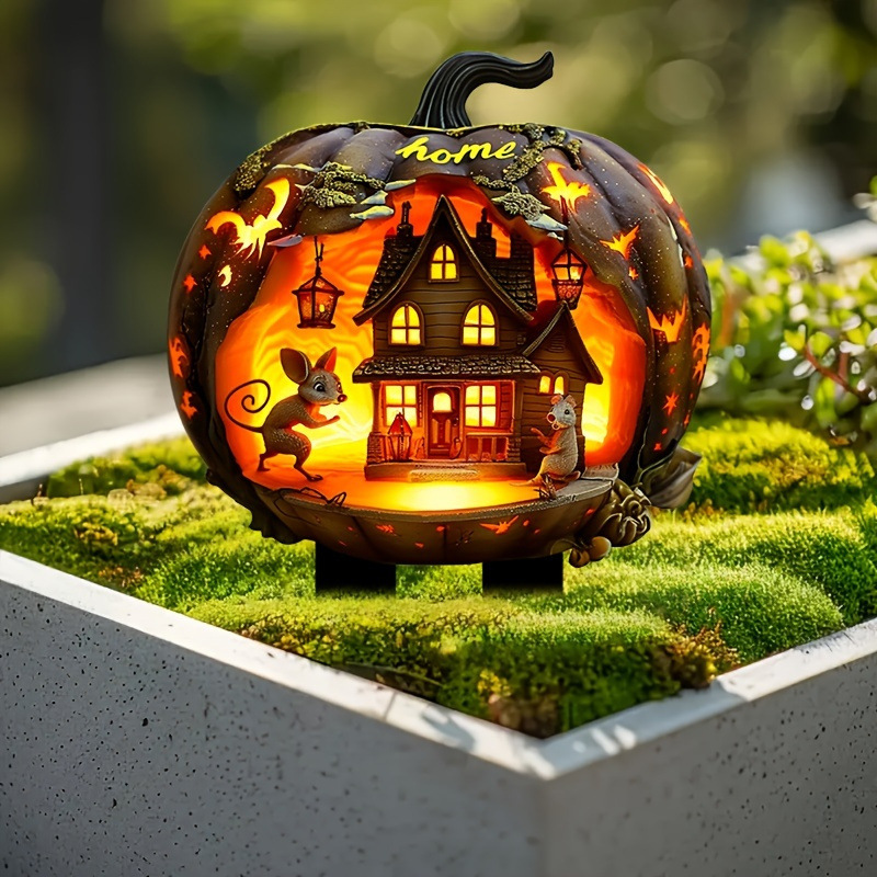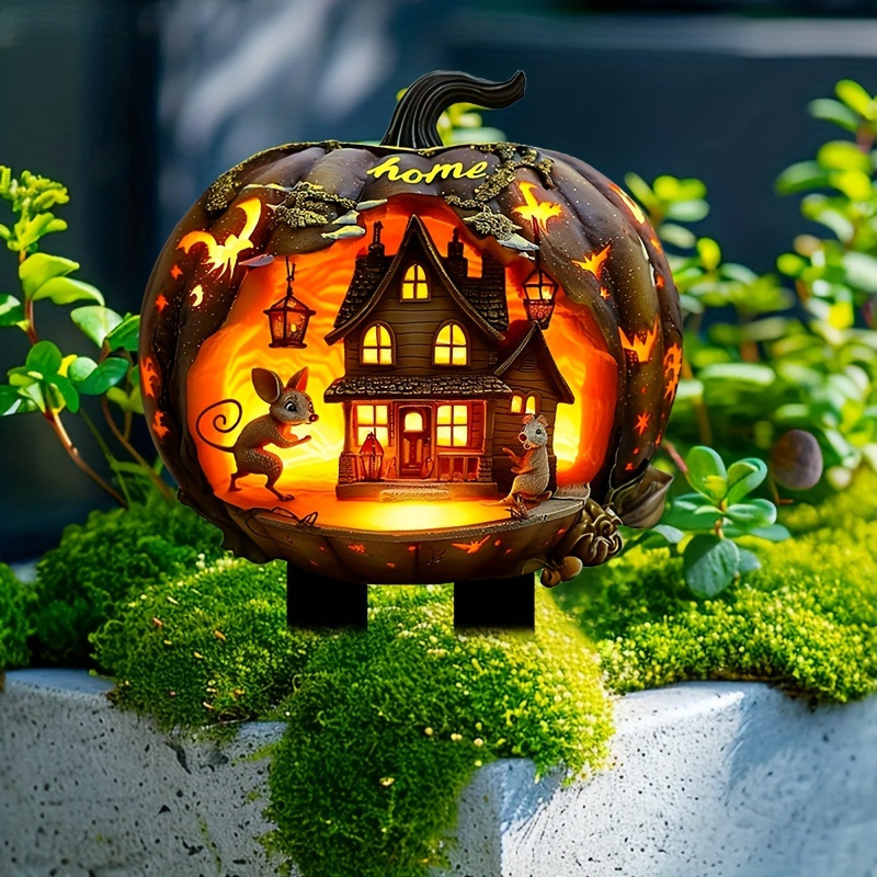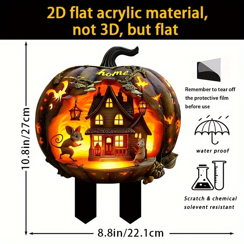 1 PC 2D 평면 아크릴 할로윈 호박 집 정원 나무 말뚝 장식, 아크릴 정원 말뚝,스토어 가기