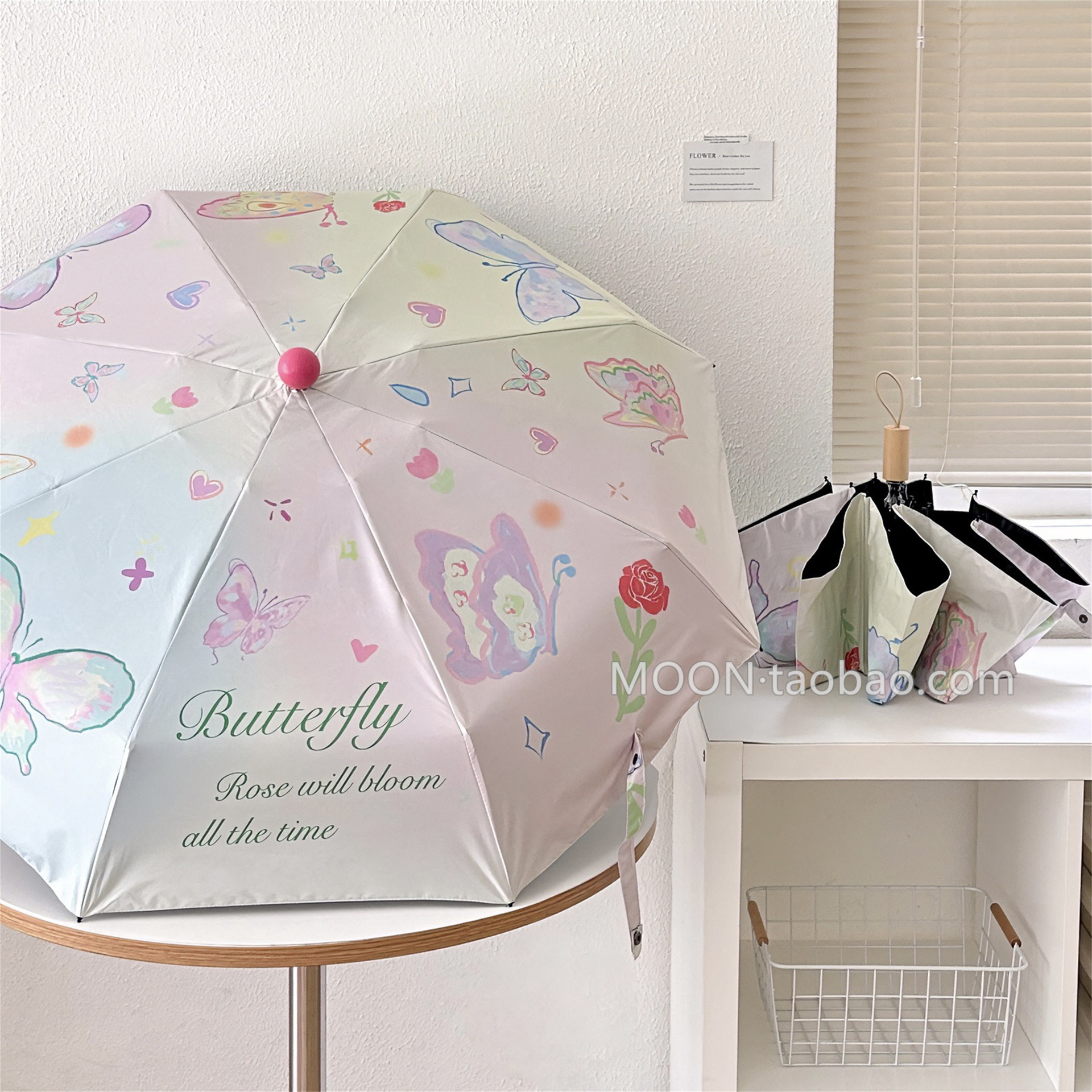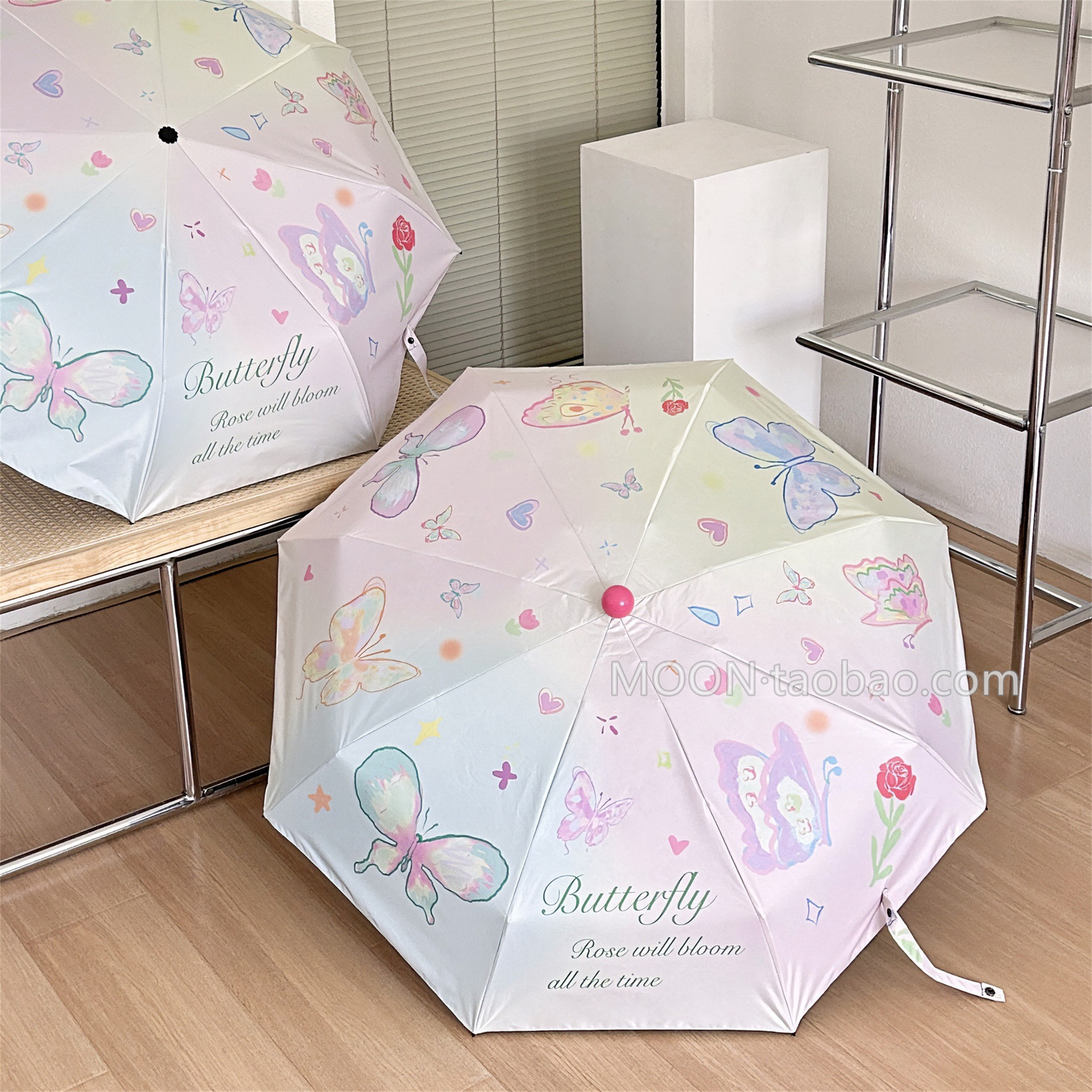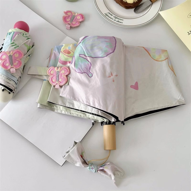 오리지널 봄 나비 우산, 고급 태양 우산, 자외선 차단 우산, 이중 목적 여성용 휴대용 파라솔