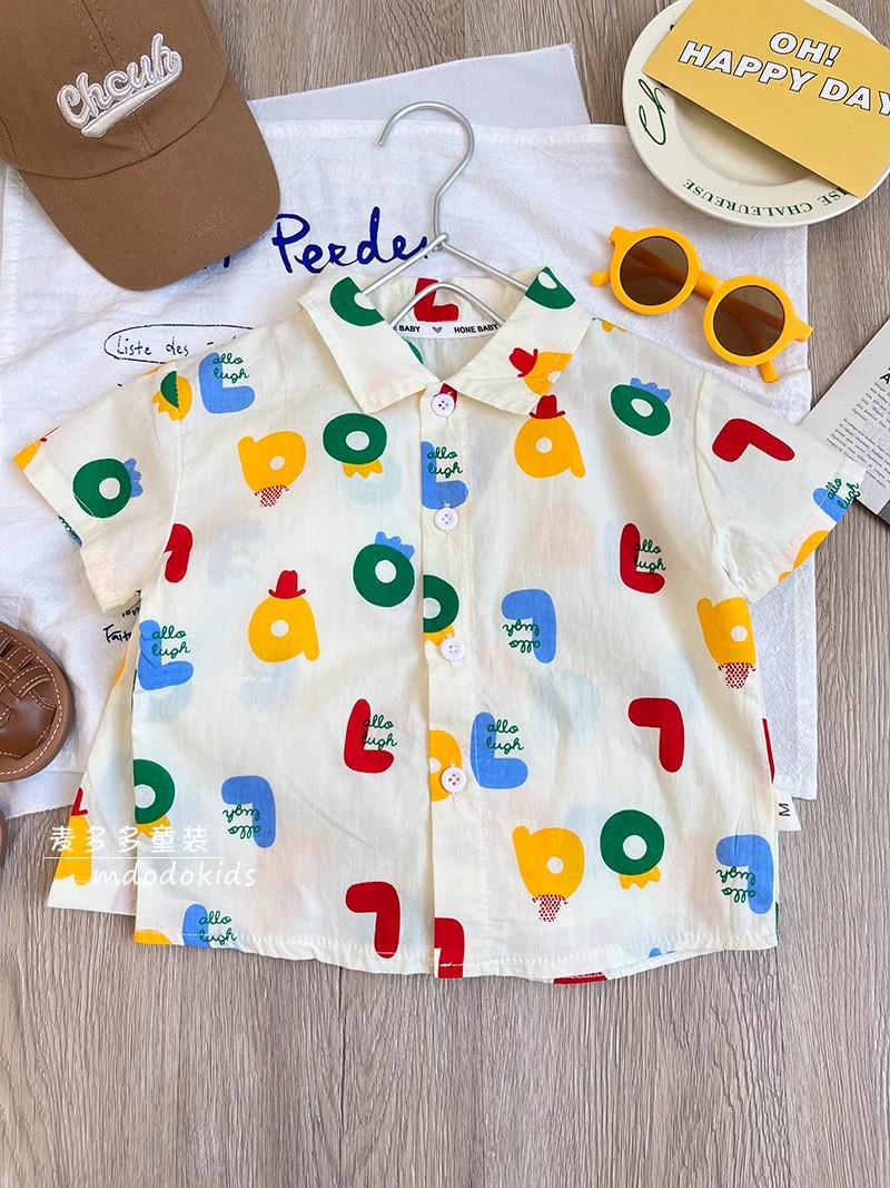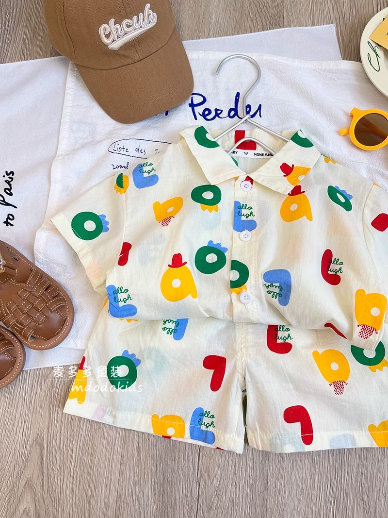 아동 여름 투피스 세트, 한국식 귀여운 반팔 옷, 여름 아기 셔츠 세트, 가볍고 통기성이 좋은 외출복