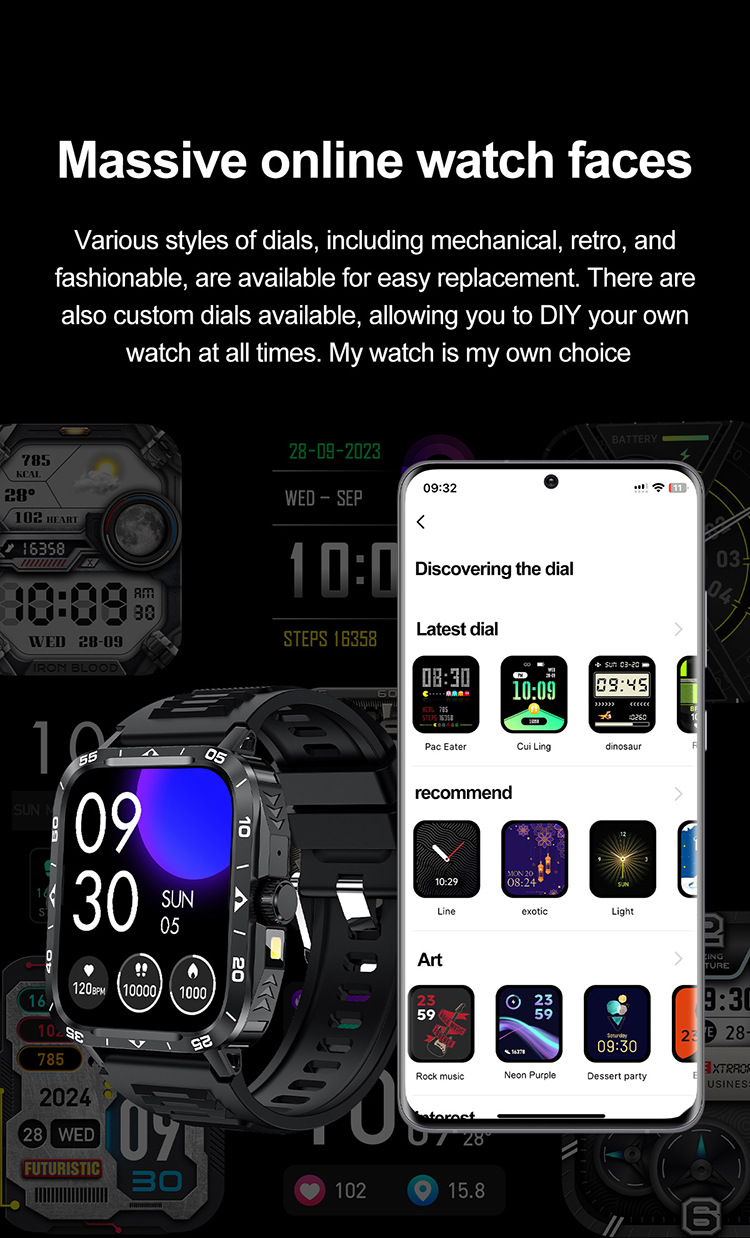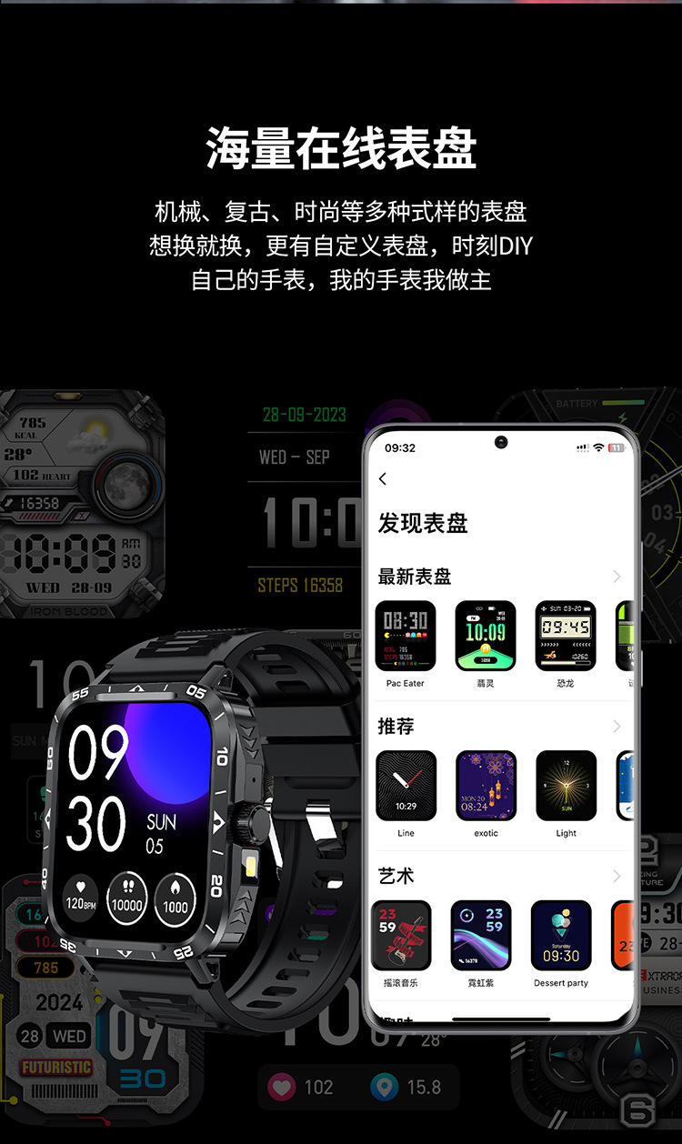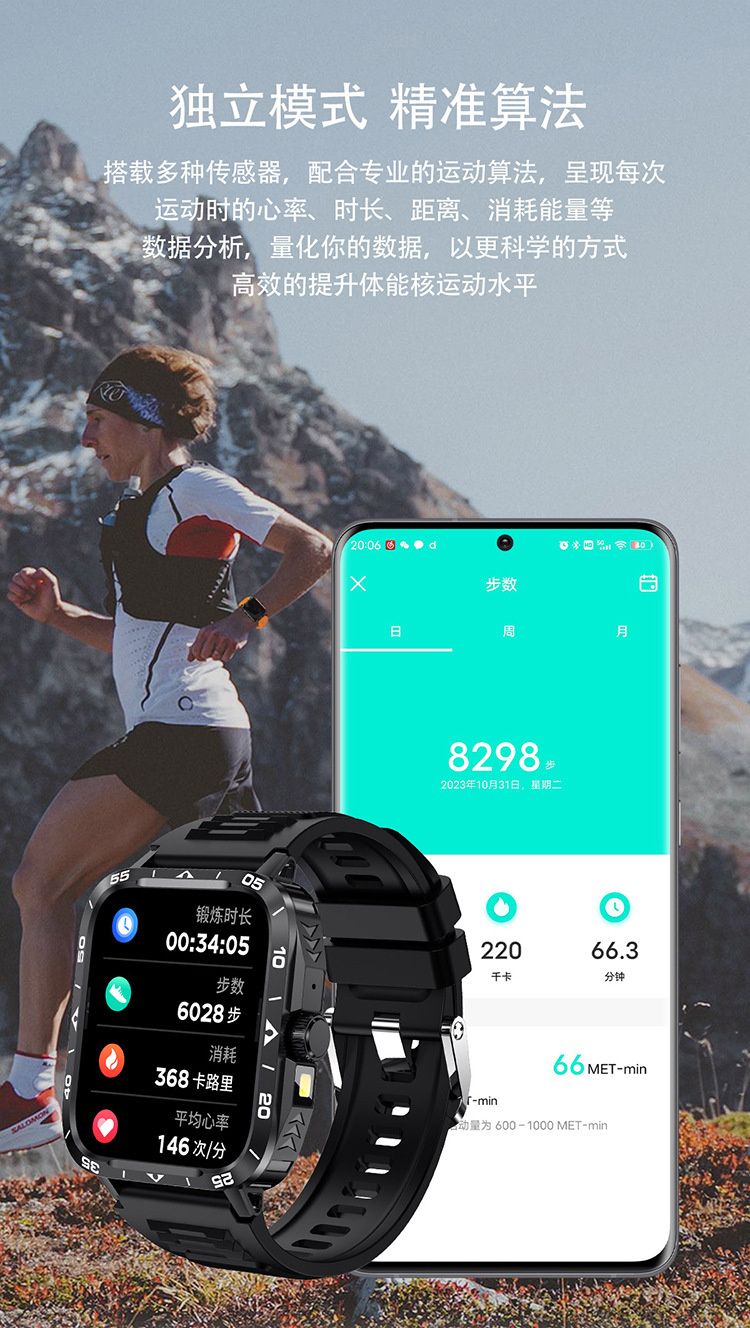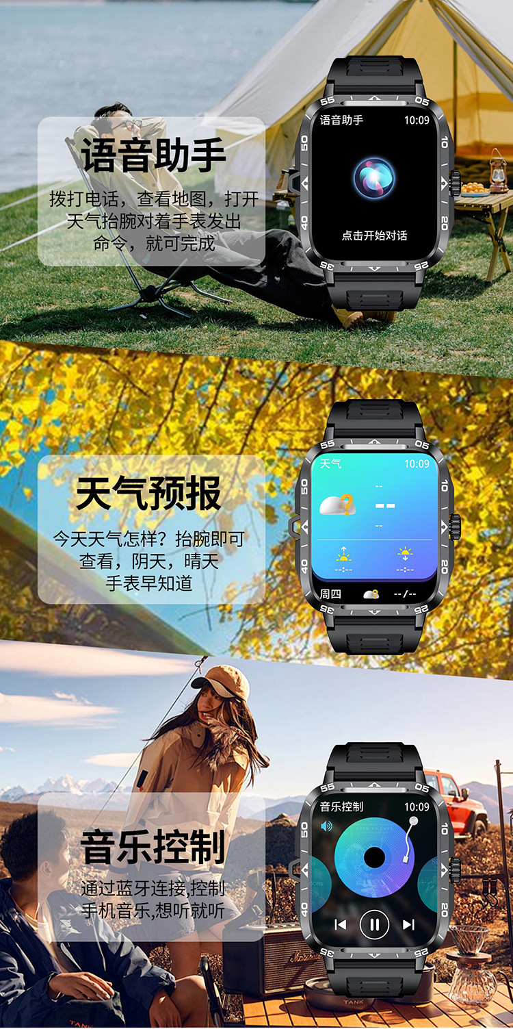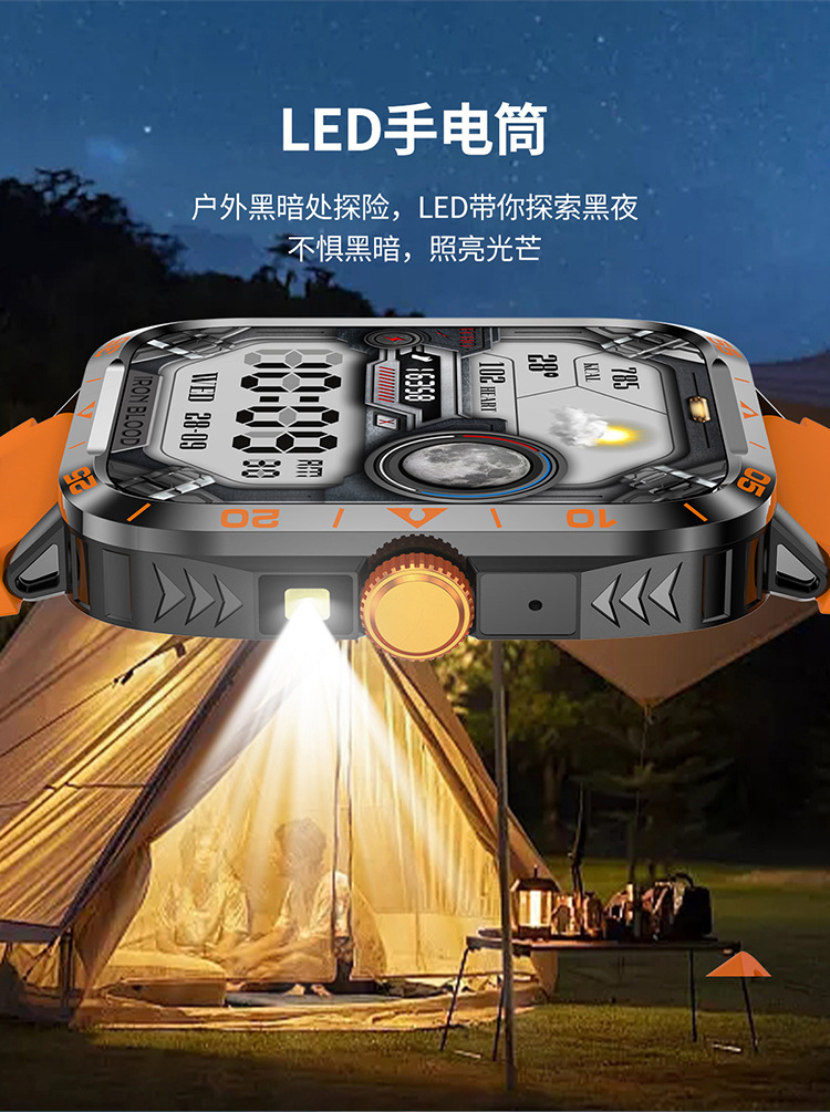 국경 간 ZW59 스마트 시계 블루투스 통화 심박수 LED 손전등 정보 푸시 다기능 스포츠 시계스토어 가기