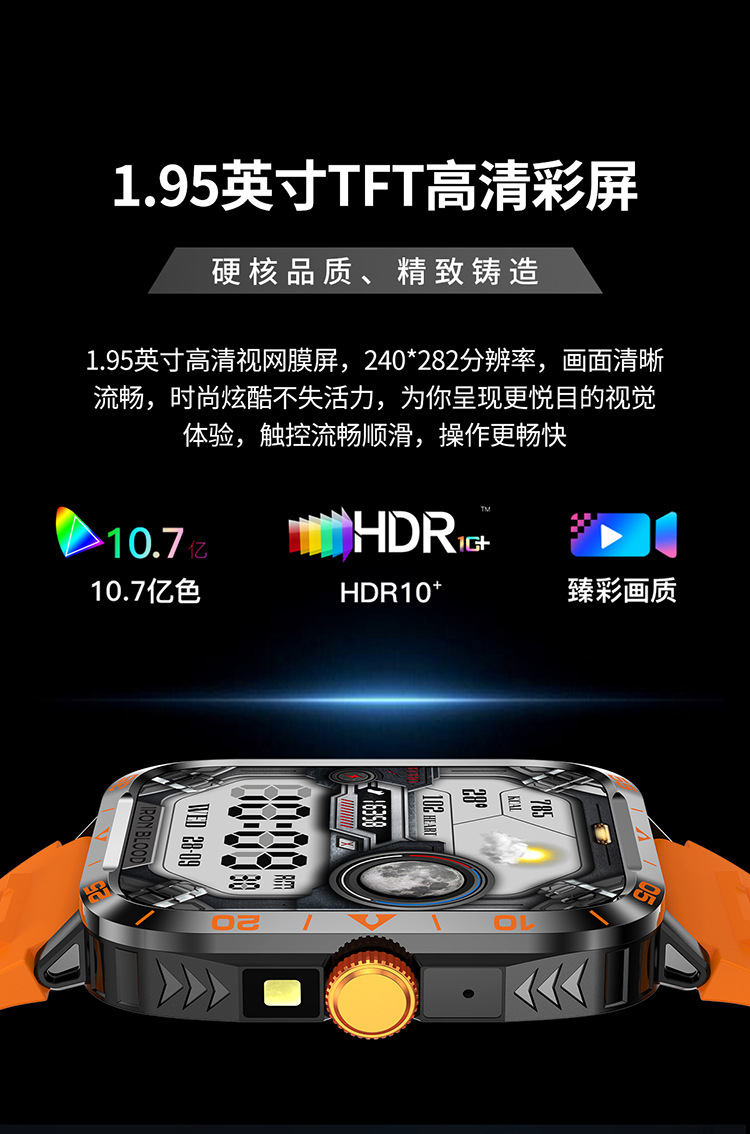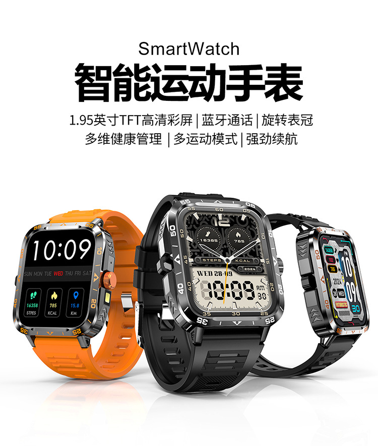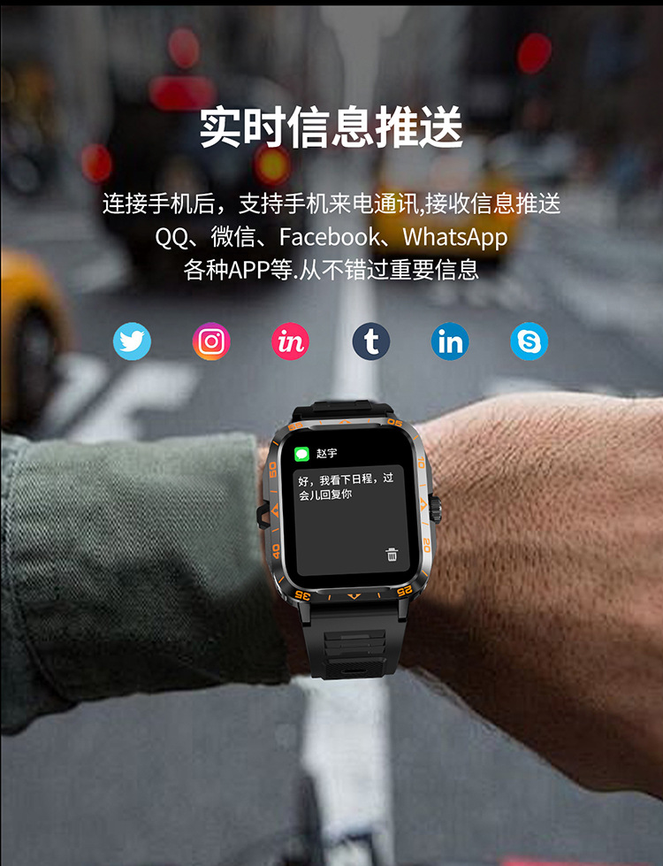 국경 간 ZW59 스마트 시계 블루투스 통화 심박수 LED 손전등 정보 푸시 다기능 스포츠 시계