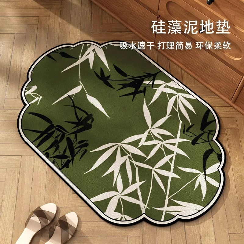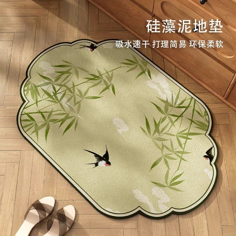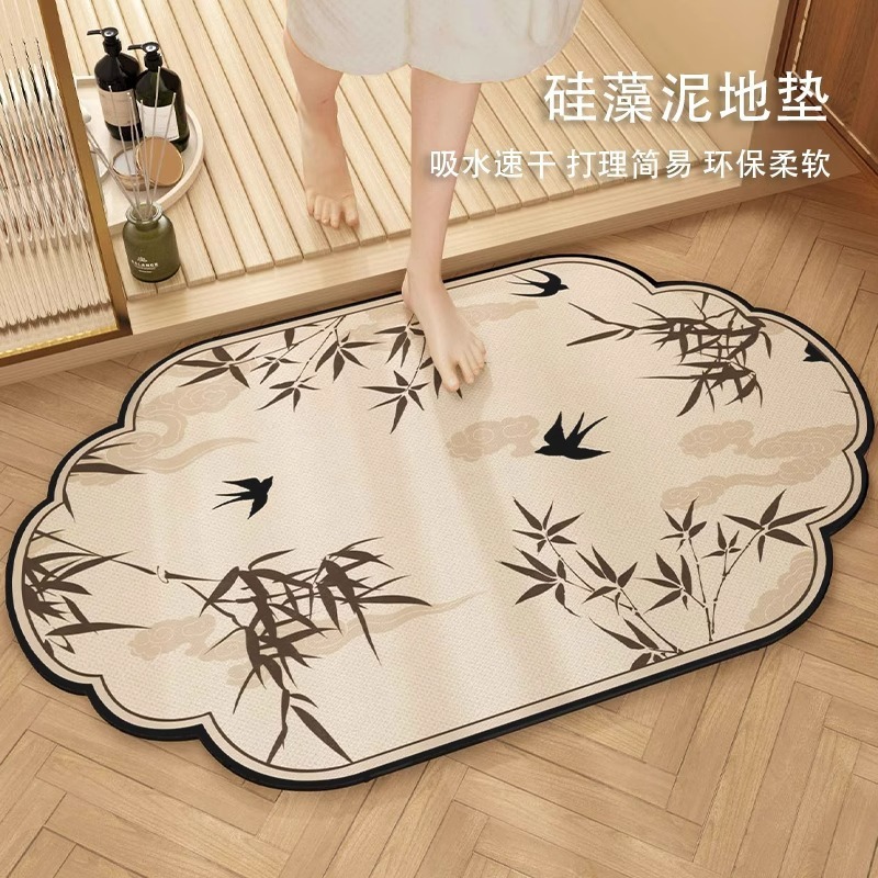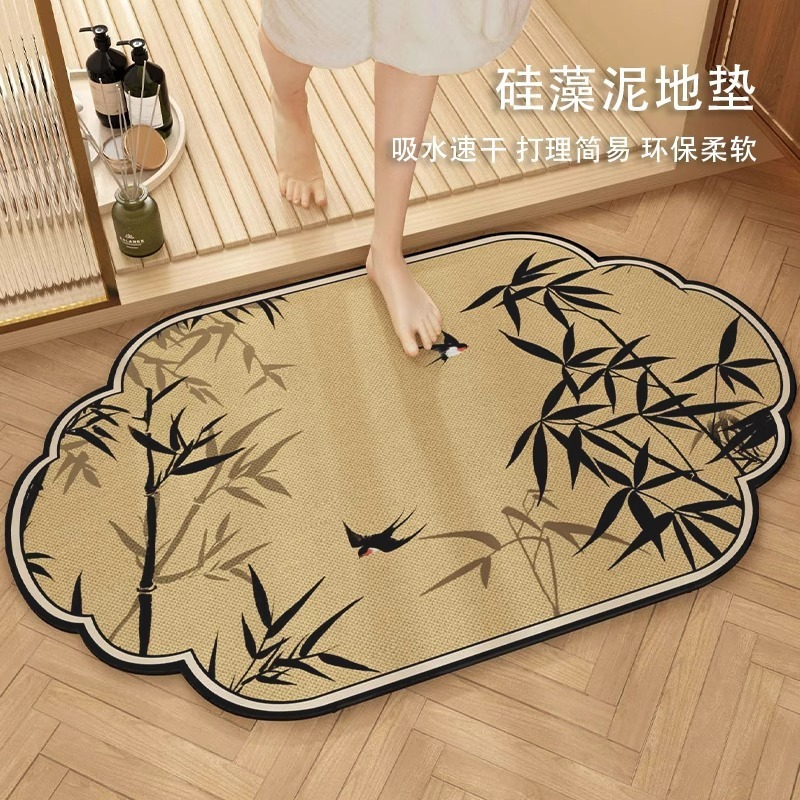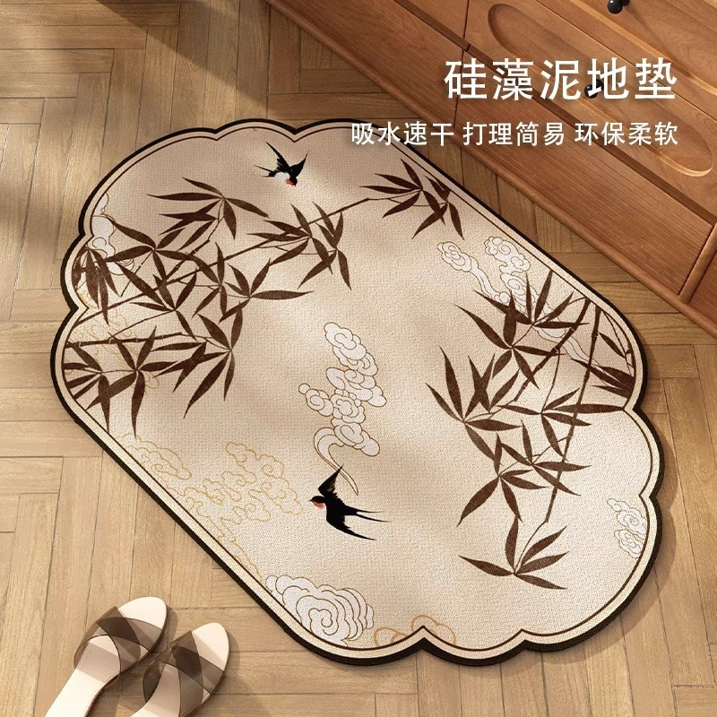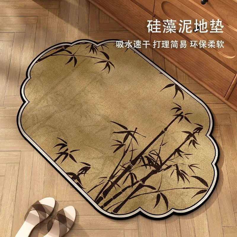 새로운 중국 스타일의 욕실 바닥 매트, 욕실 문, 규조토 진흙, 흡수성, 속건성, 미끄럼 방지 발 매트, 화장실 매트, 내마모성 매트스토어 가기