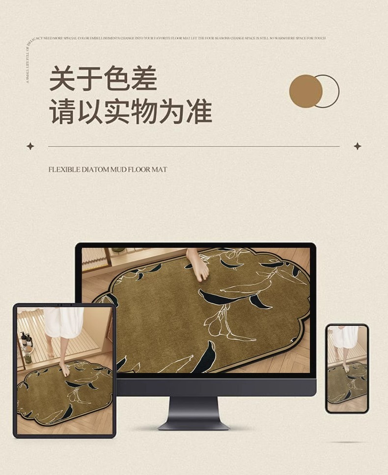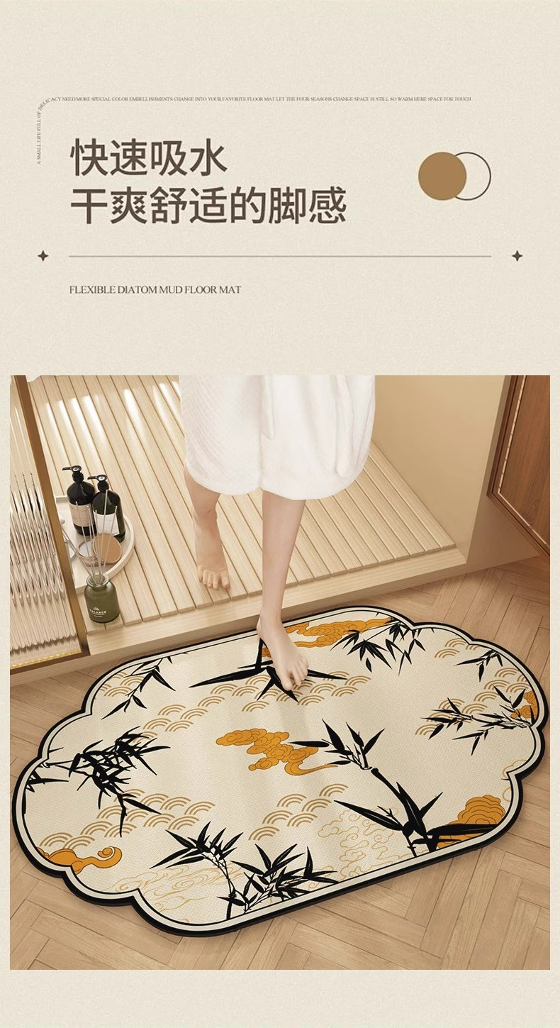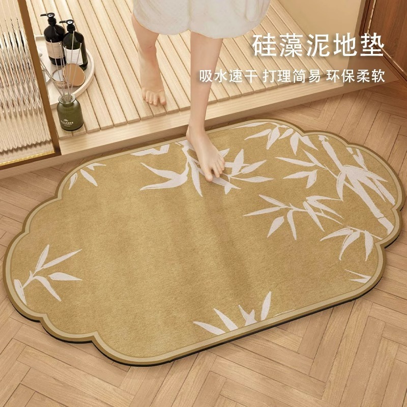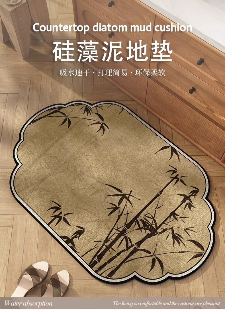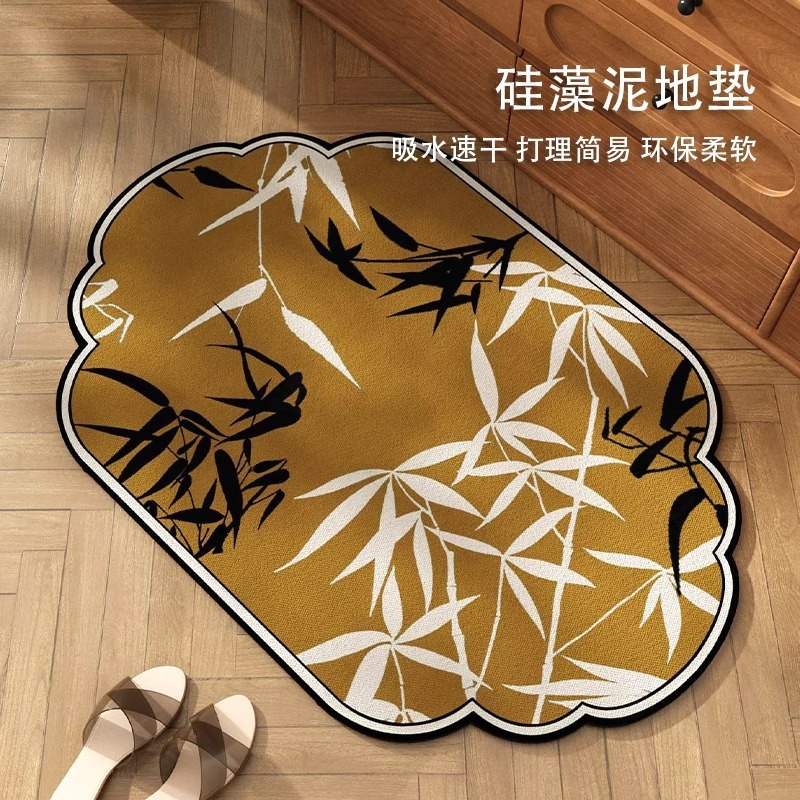 새로운 중국 스타일의 욕실 바닥 매트, 욕실 문, 규조토 진흙, 흡수성, 속건성, 미끄럼 방지 발 매트, 화장실 매트, 내마모성 매트스토어 가기