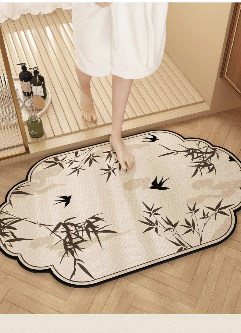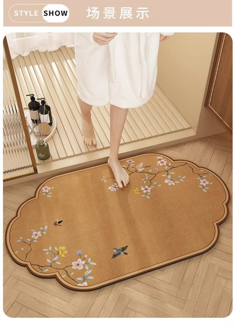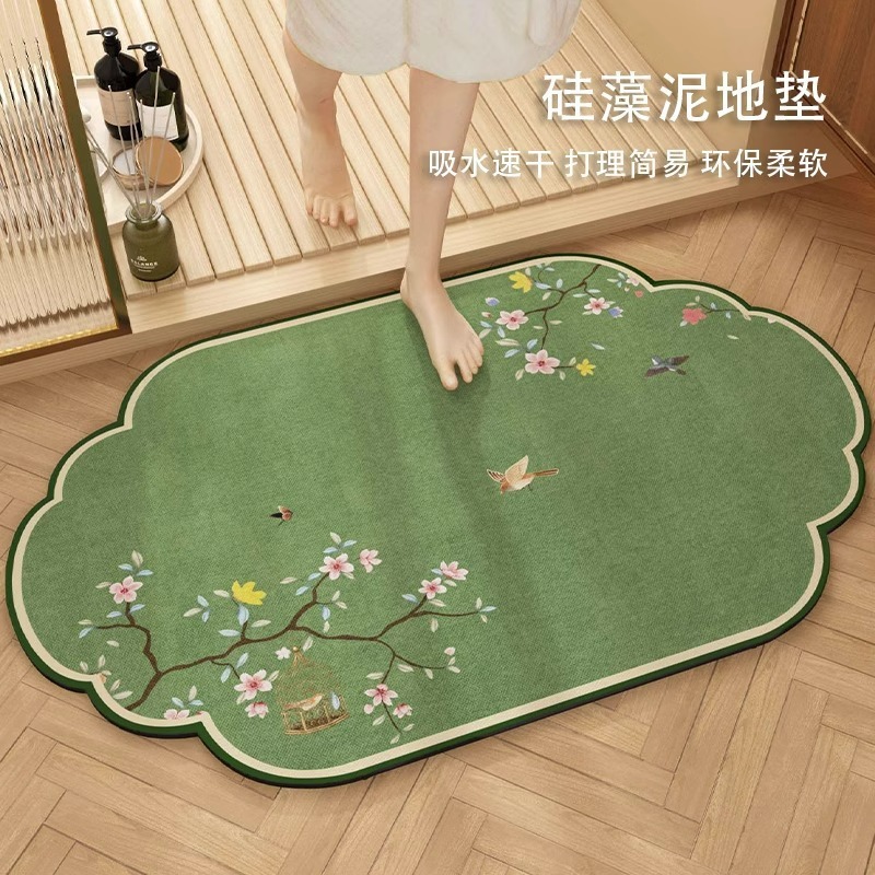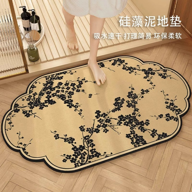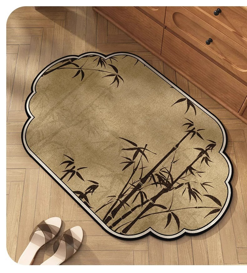 새로운 중국 스타일의 욕실 바닥 매트, 욕실 문, 규조토 진흙, 흡수성, 속건성, 미끄럼 방지 발 매트, 화장실 매트, 내마모성 매트