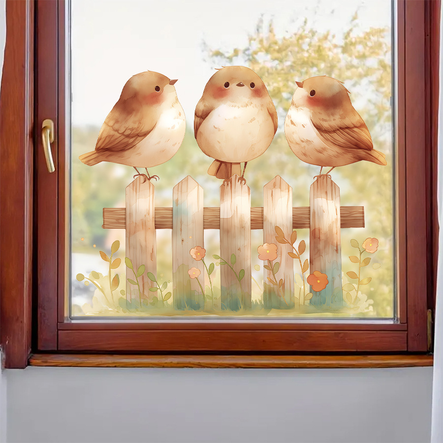 HS1269Q 세 참새 나무 울타리 자체 접착 벽 스티커 침실 거실 주방 창 이동식 장식 스티커