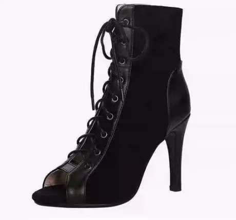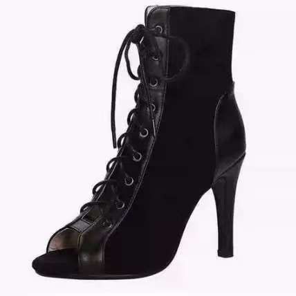 여성을위한 유럽과 미국의 레이스 업 샌들 2025 여름 중공 짧은 부츠 얇은 굽 하이힐 댄스 슈즈 대형 오픈 토 샌들
