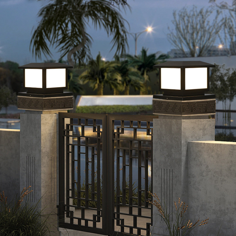간단한 사각형 태양열 헤드 라이트 야외 도어 헤드 라이트 안뜰 게이트 기둥 빌라 정원 벽 램프 도매스토어 가기