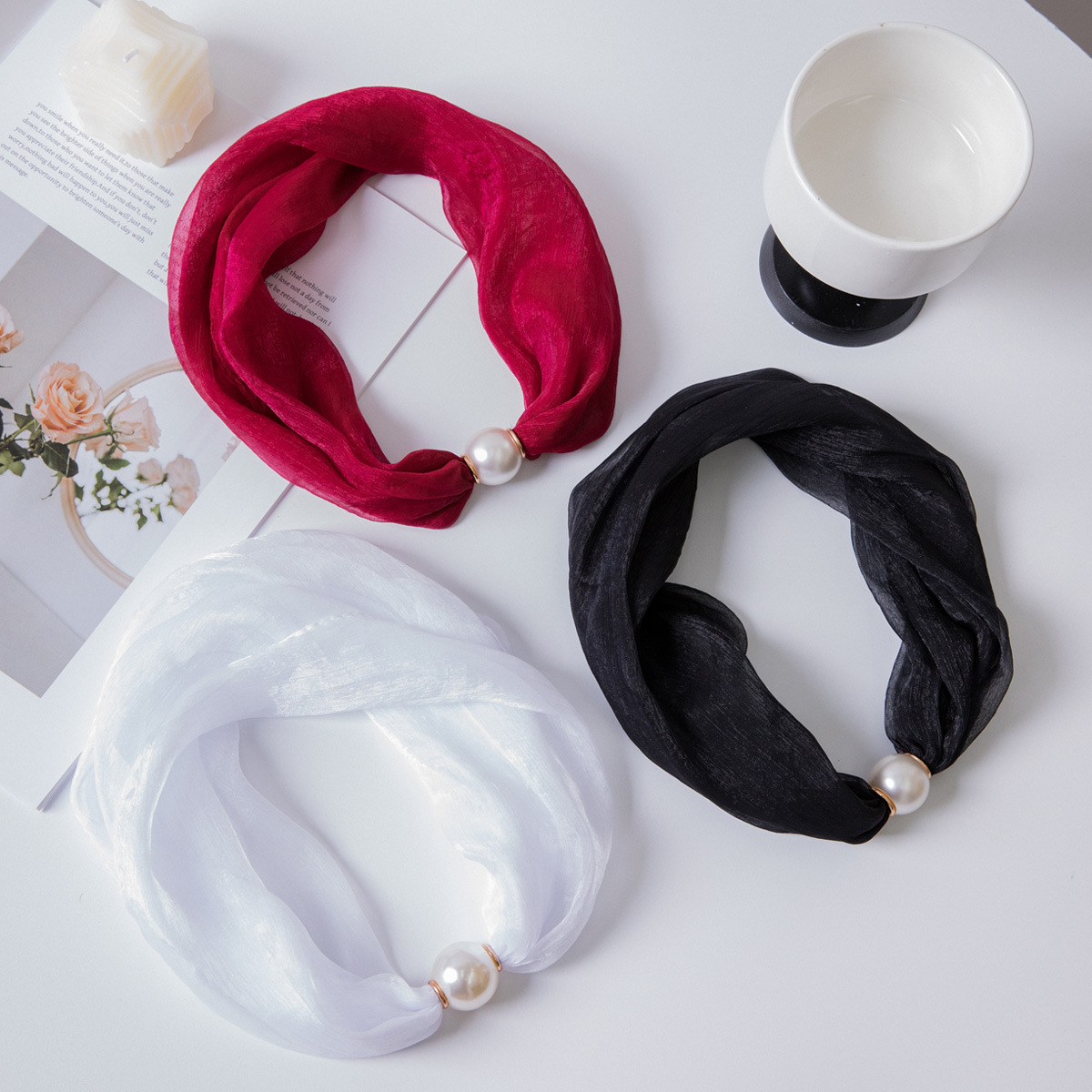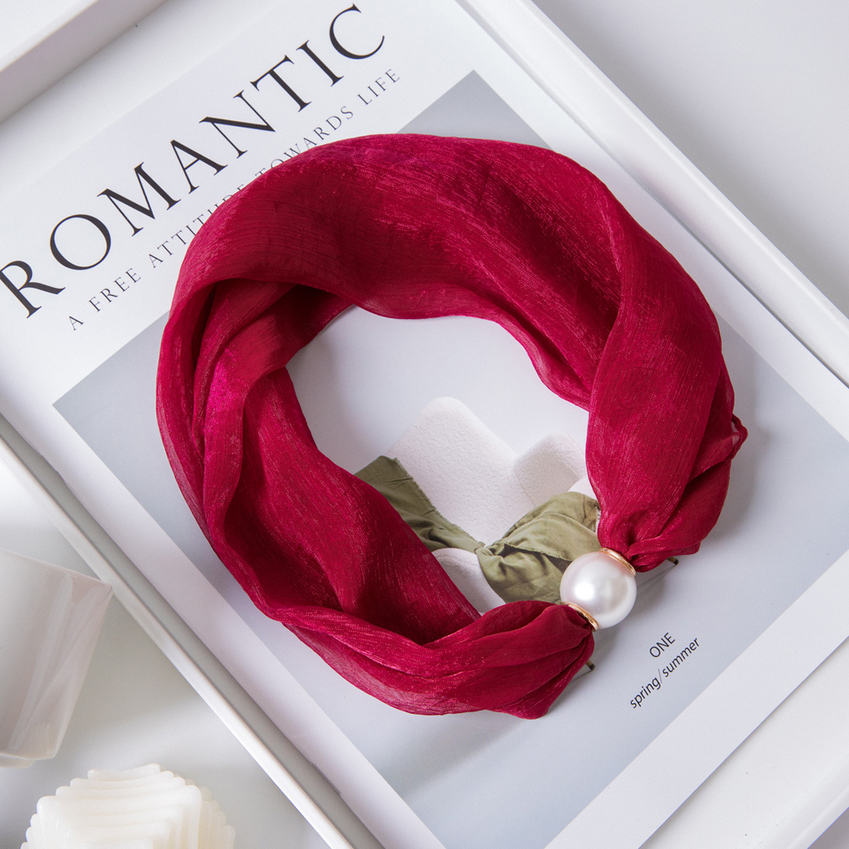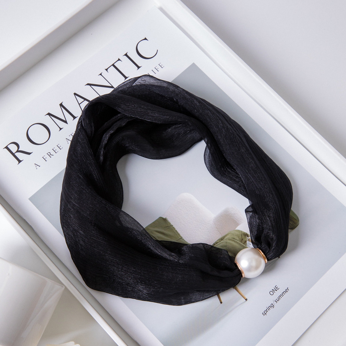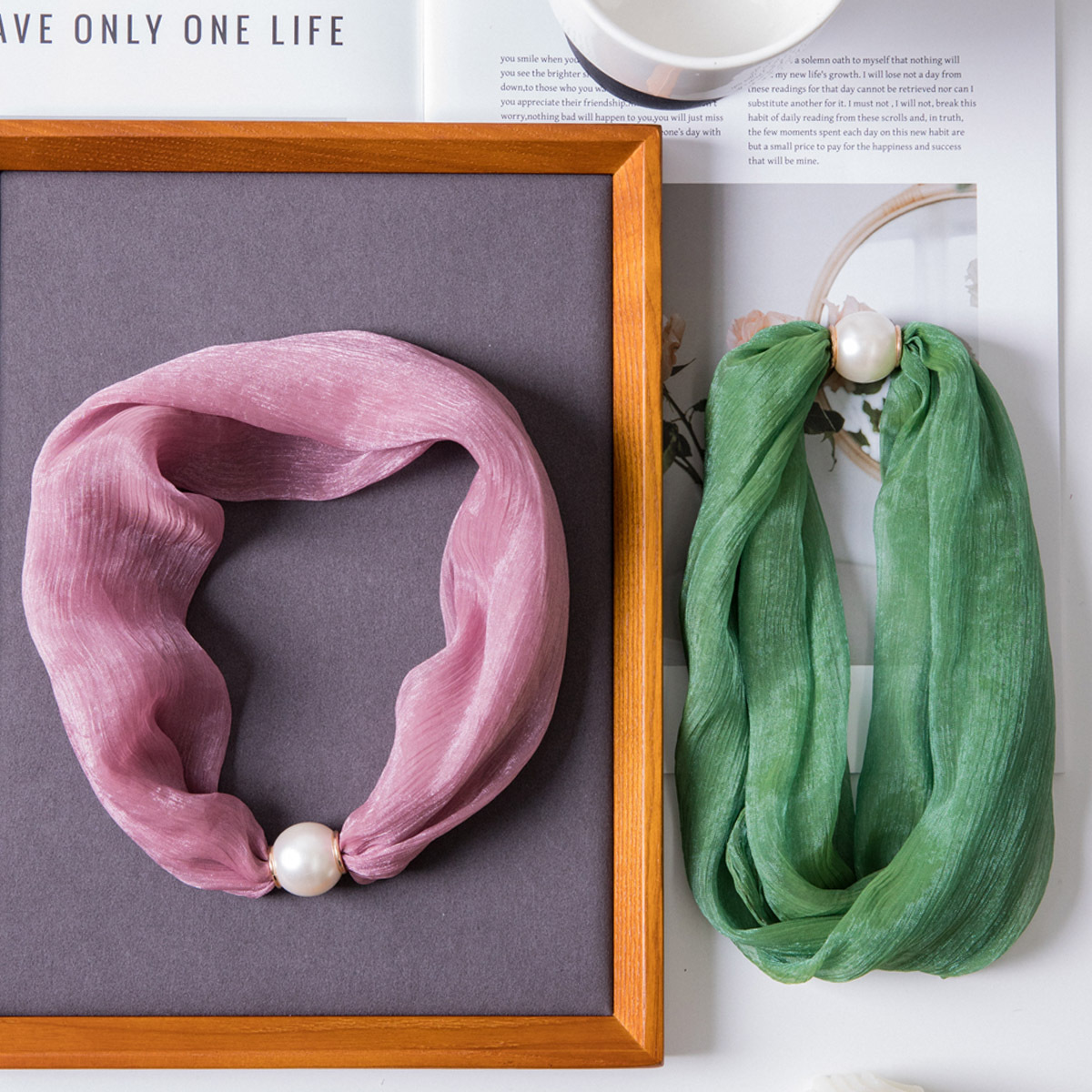 새로운 진주 자석 버클 실크 스카프, 이중층 양면 폴카 도트 목걸이, 흉터 커버 목 패턴, 다용도 게으른 스카프