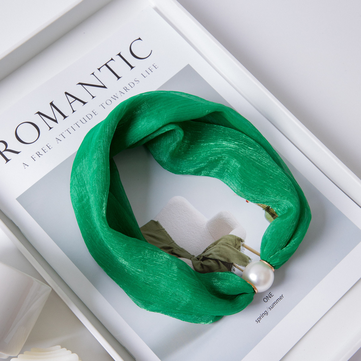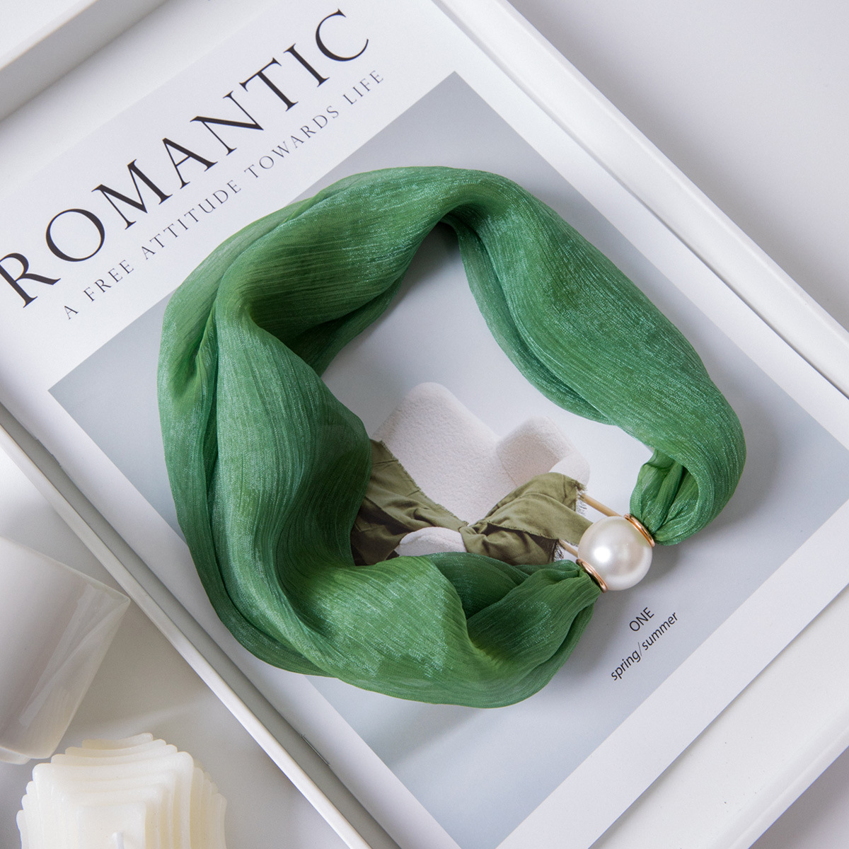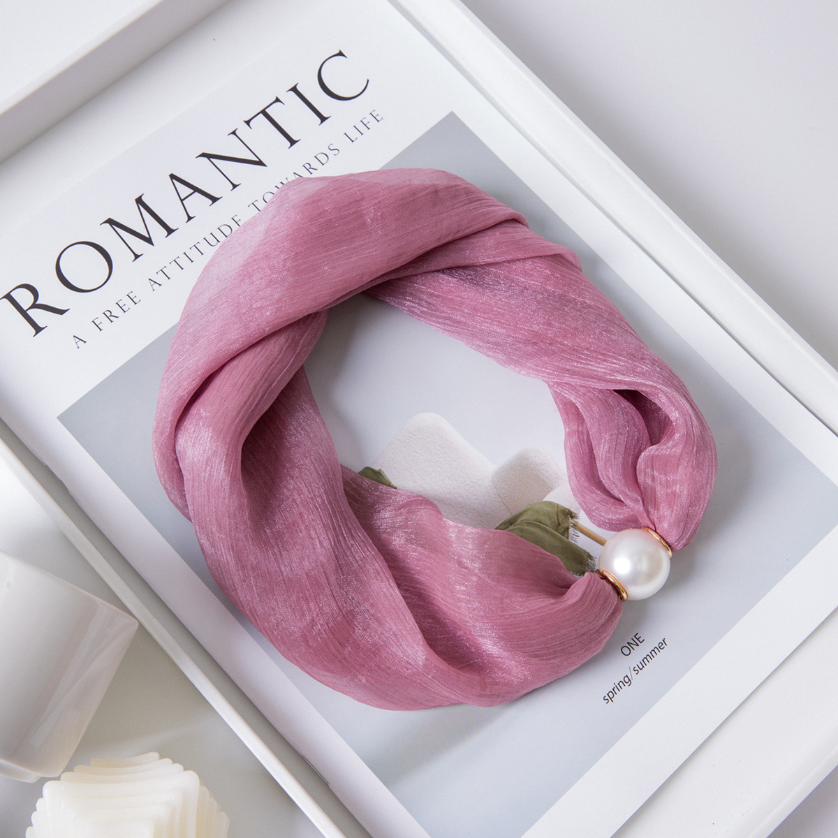 새로운 진주 자석 버클 실크 스카프, 이중층 양면 폴카 도트 목걸이, 흉터 커버 목 패턴, 다용도 게으른 스카프