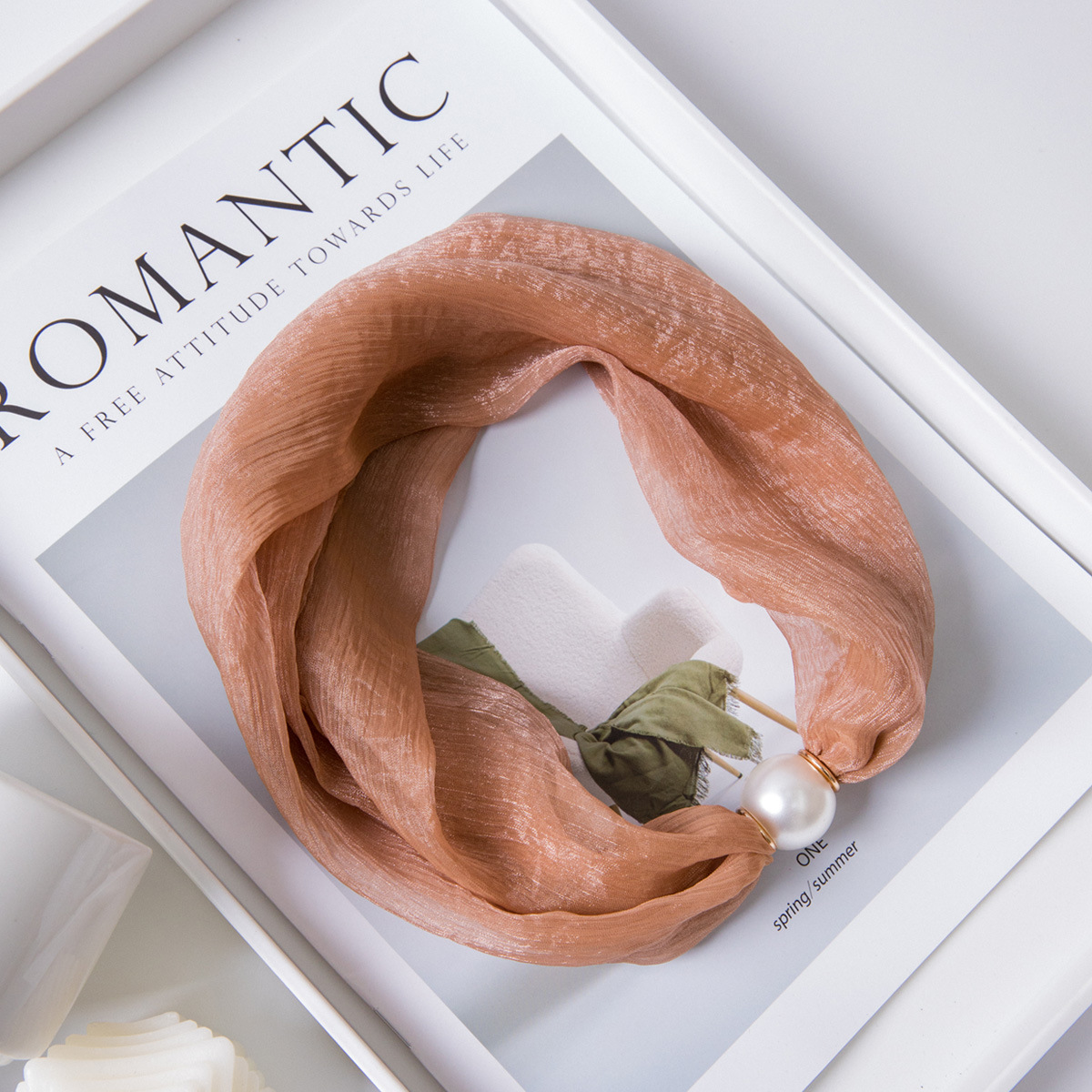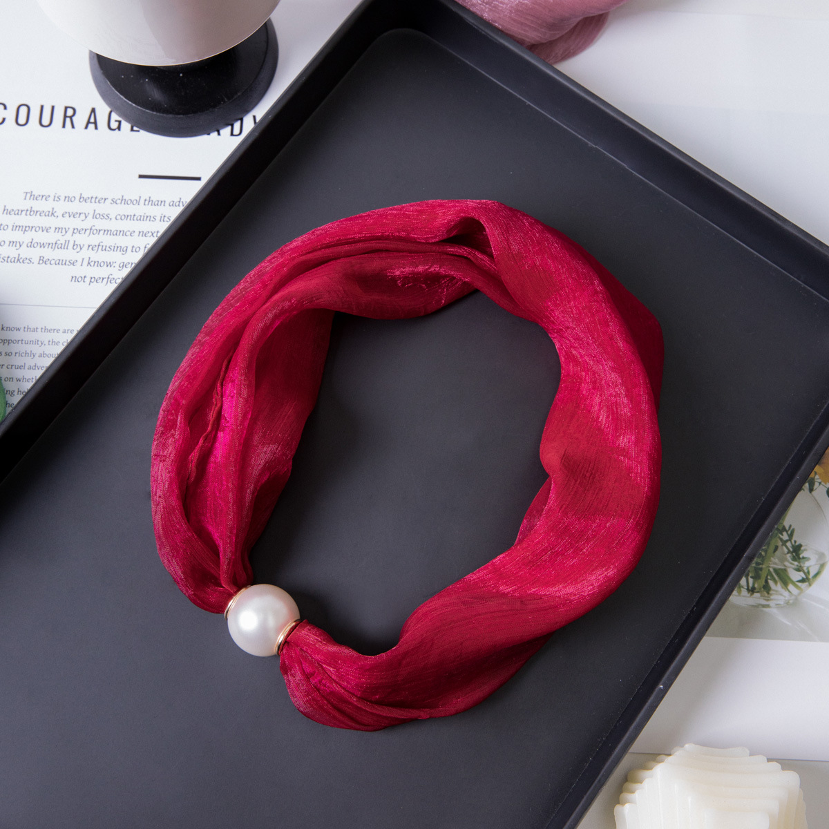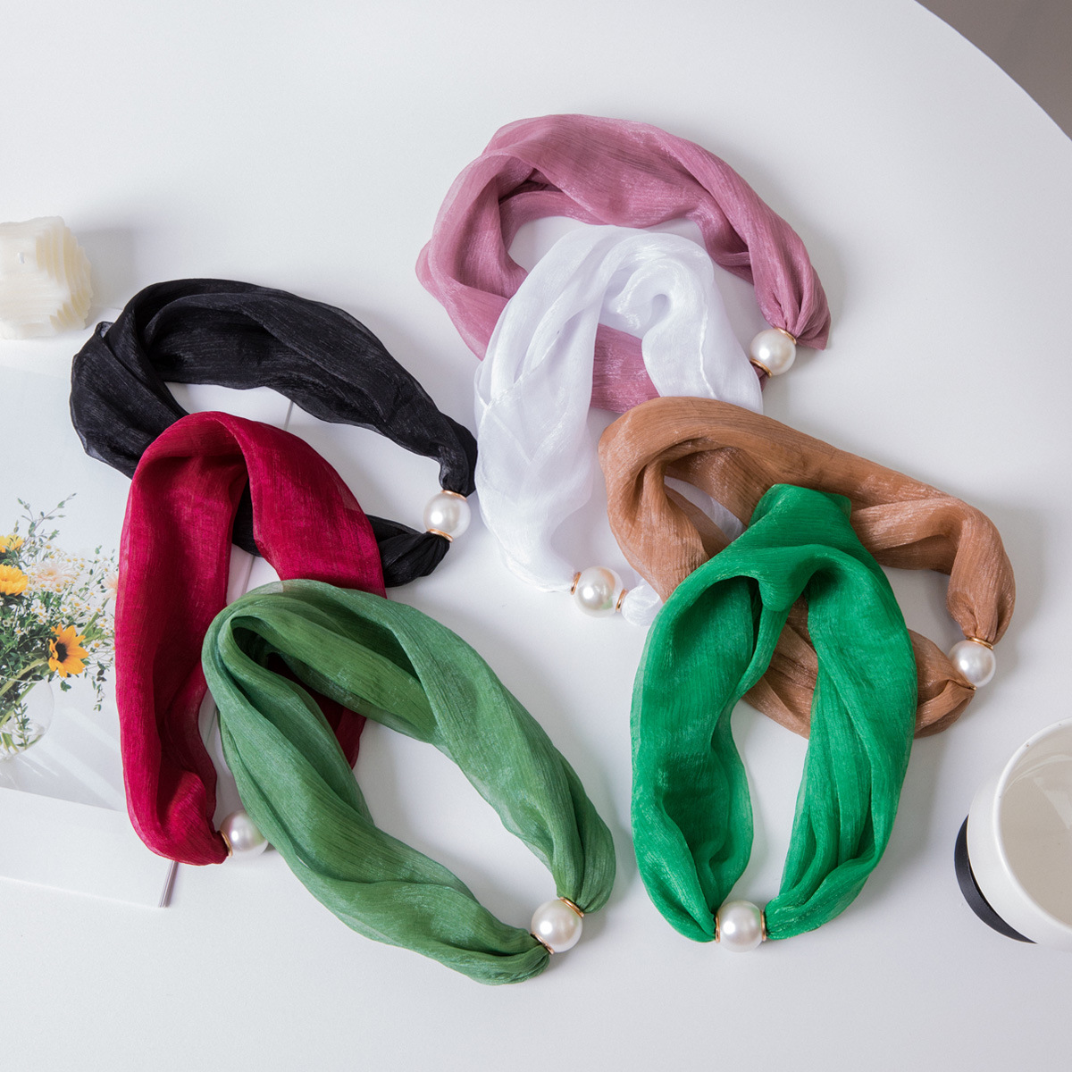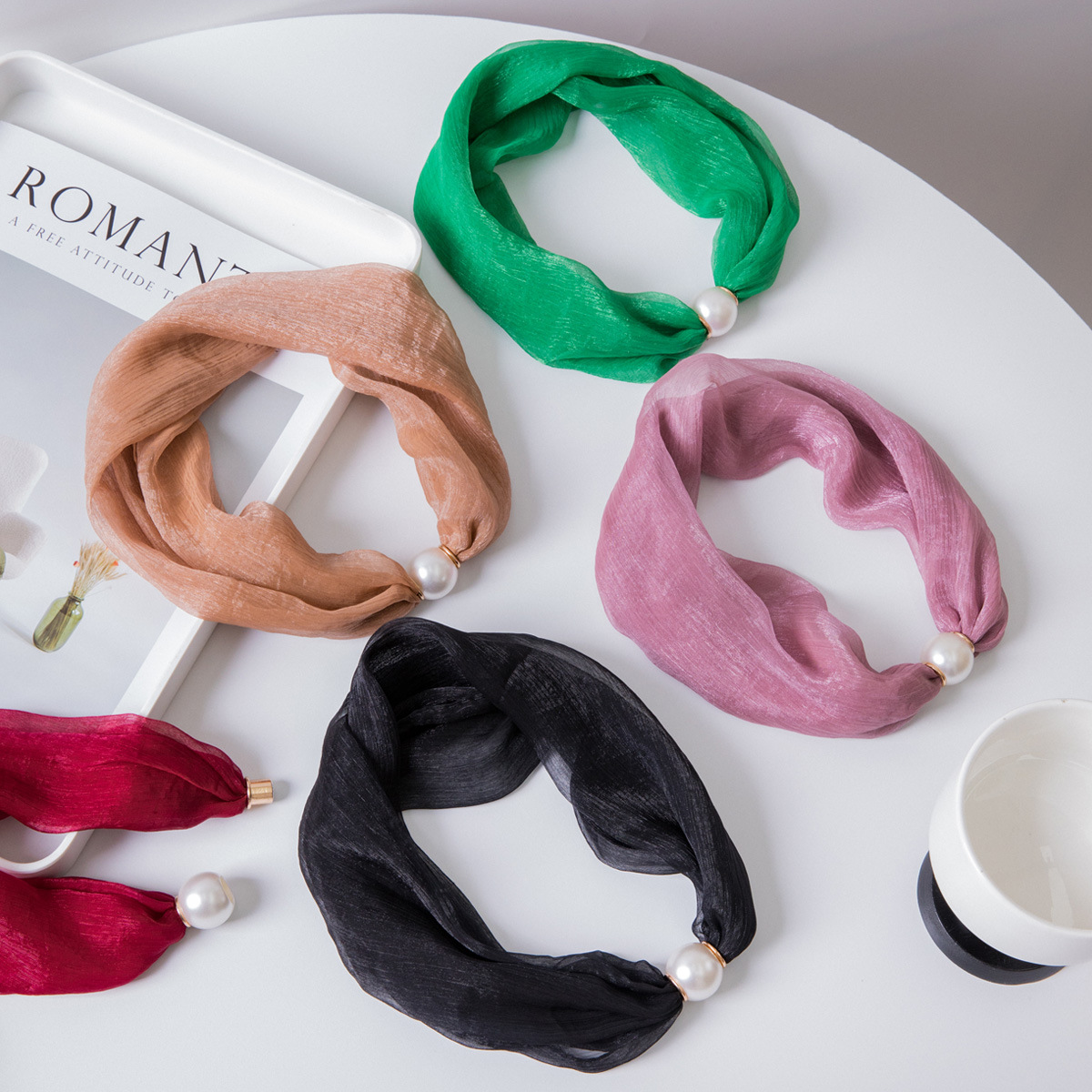 새로운 진주 자석 버클 실크 스카프, 이중층 양면 폴카 도트 목걸이, 흉터 커버 목 패턴, 다용도 게으른 스카프