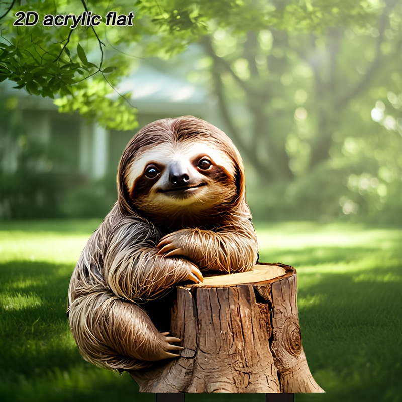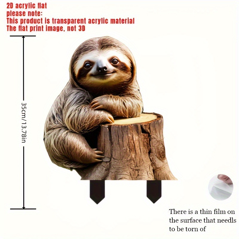2D 평면, 1개 35cm / 13.8inch 사랑스러운 나무 게으른 동물 정원 말뚝 장식 - 빈티지 아크릴