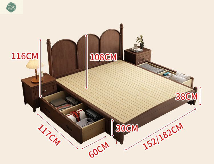 중세 스타일 단단한 나무 침대 더블 침대 1.68m 현대 간단한 아파트 임대 집 B & B 침대 침실 킹 침대