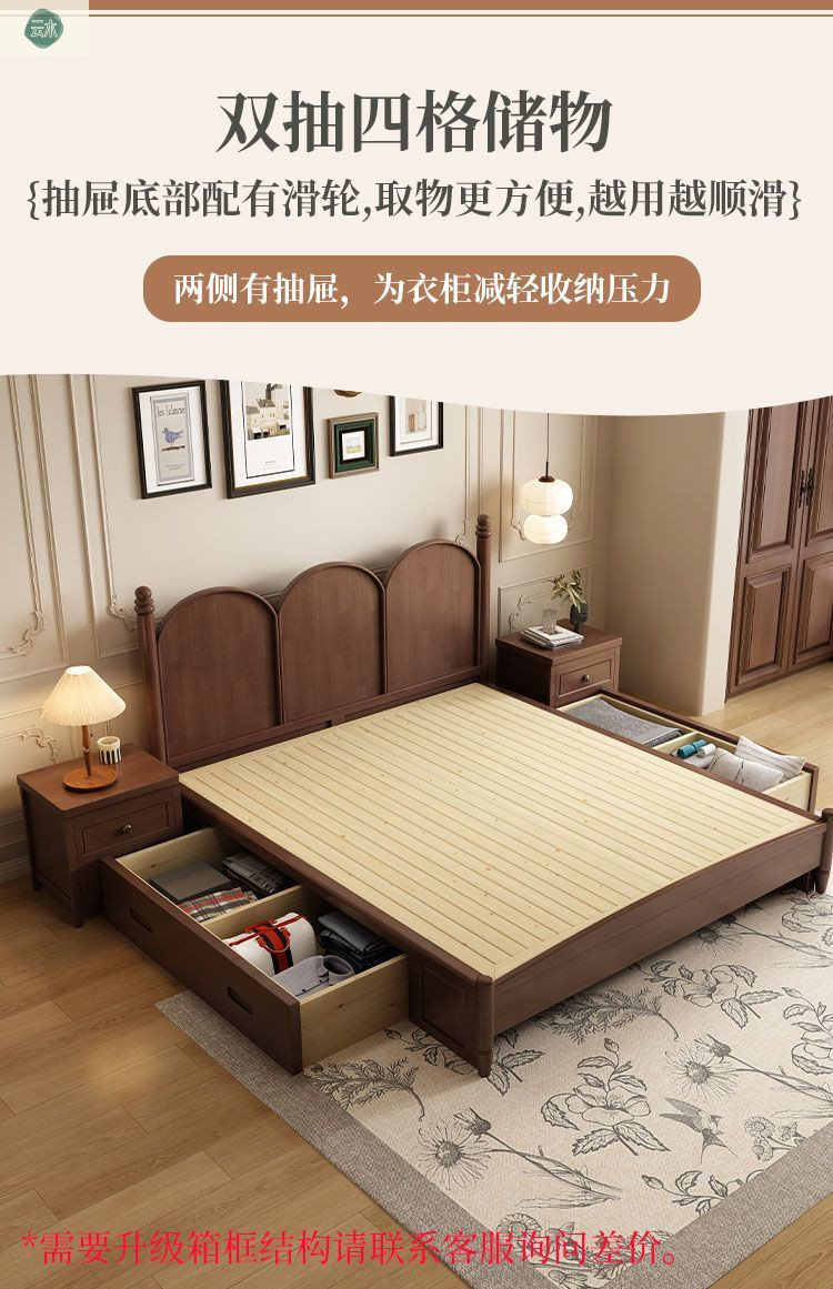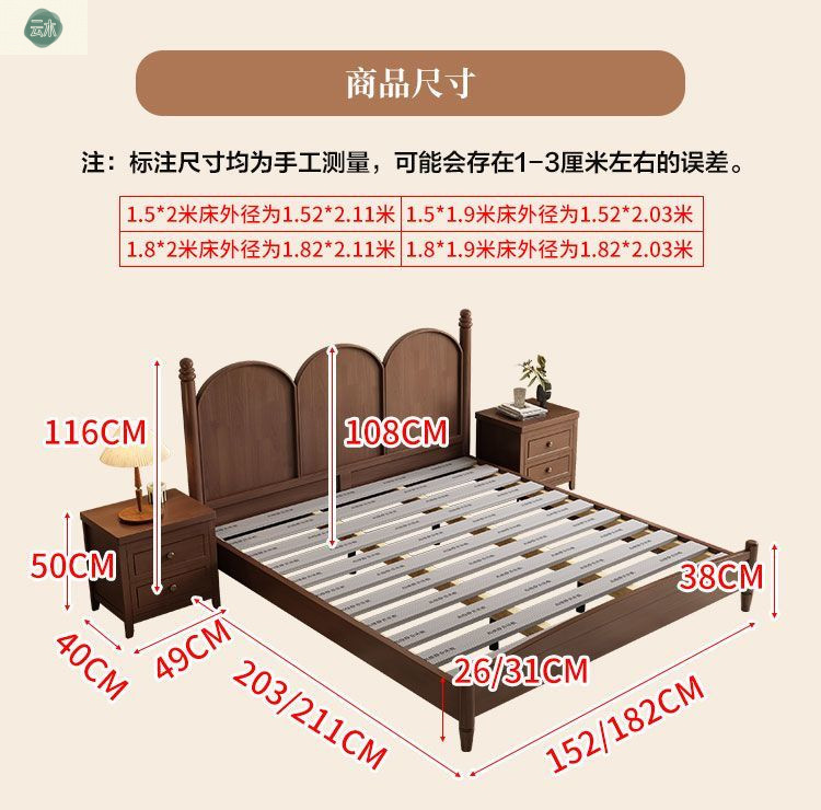 중세 스타일 단단한 나무 침대 더블 침대 1.68m 현대 간단한 아파트 임대 집 B & B 침대 침실 킹 침대스토어 가기