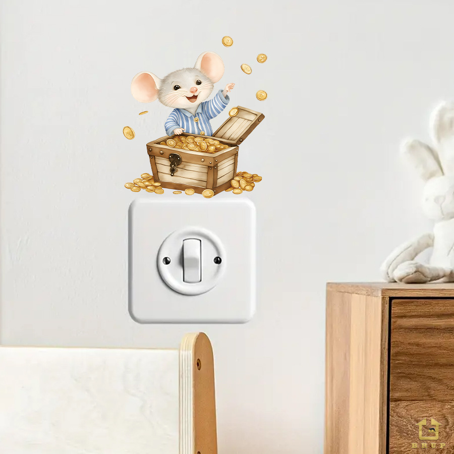 HS-S30 만화 작은 마우스 금화 보물 자체 접착 스위치 스티커 침실 거실 룸 미화 장식 벽 스티커