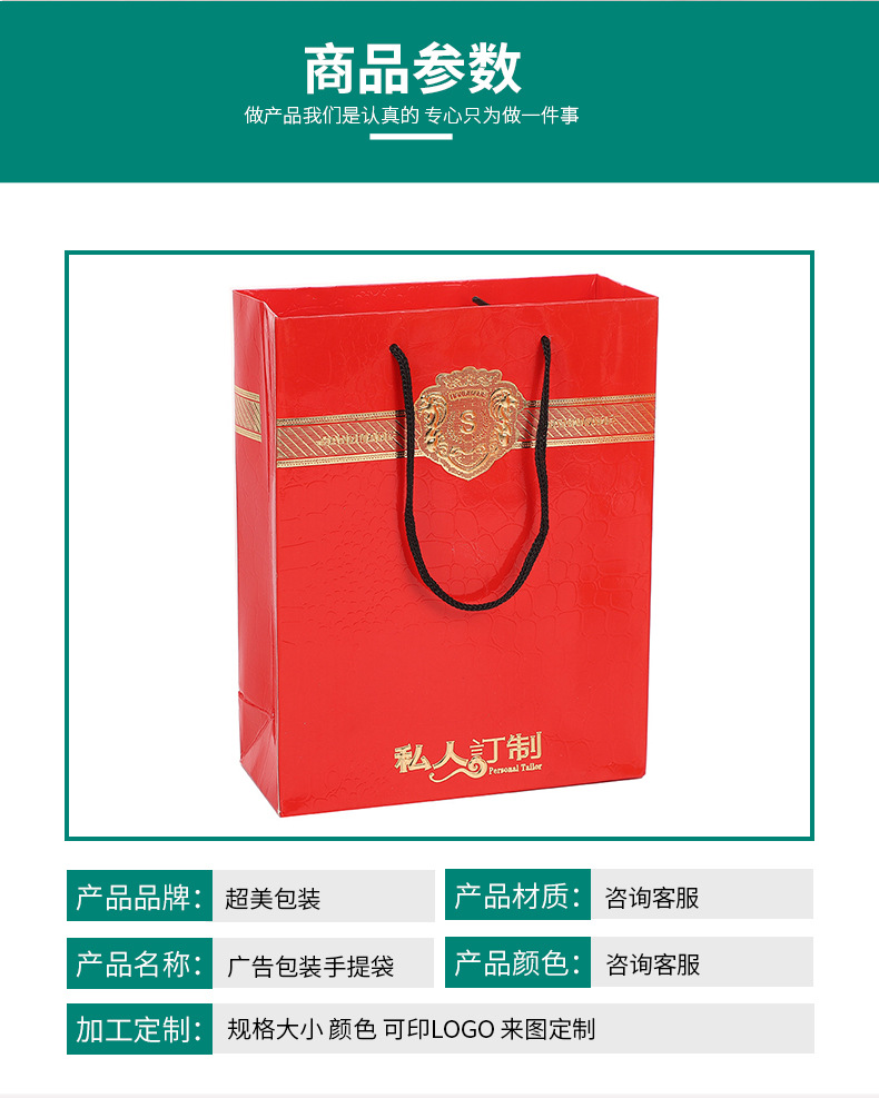 선물 핸드백 광고 포장 가방 빨간 악어 패턴 로고 인쇄 쇼핑 의류 기업 종이 가방 하이 엔드스토어 가기
