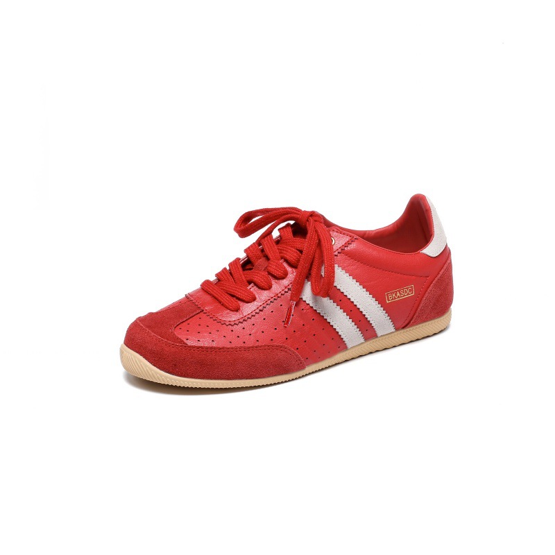 여성을위한 복고풍 빨간색 육군 훈련 신발 2025 새로운 라운드 발가락 레이스 업 컬러 매칭 캐주얼 스포츠 신발 플랫 가죽 포레스트 검프 신발스토어 가기