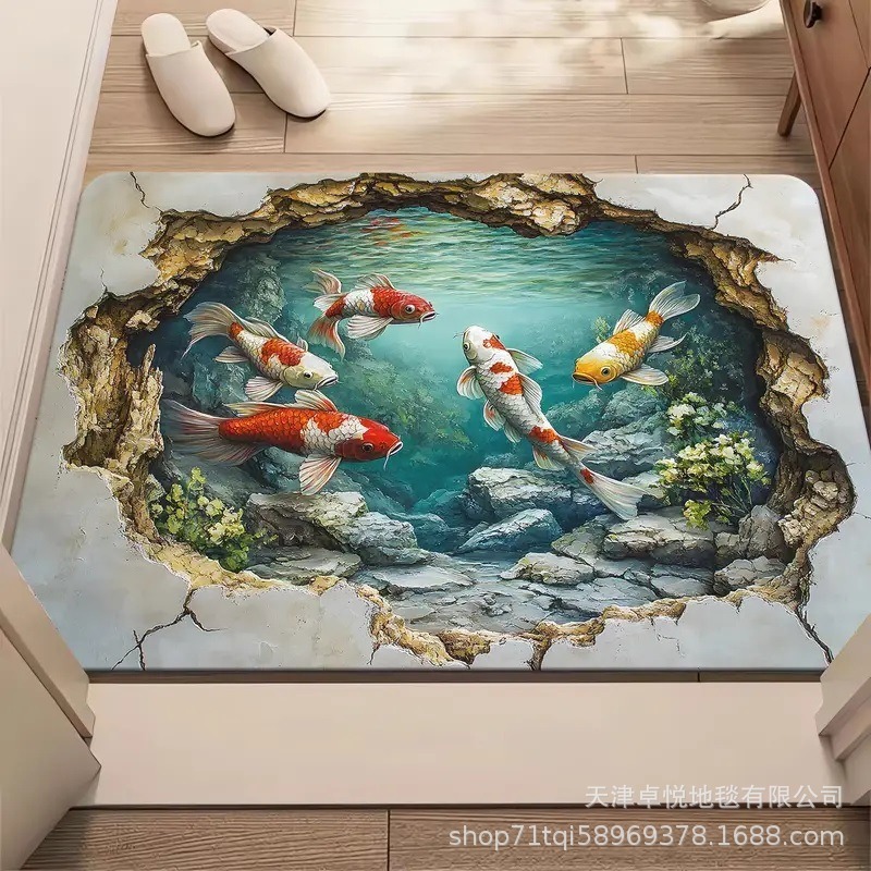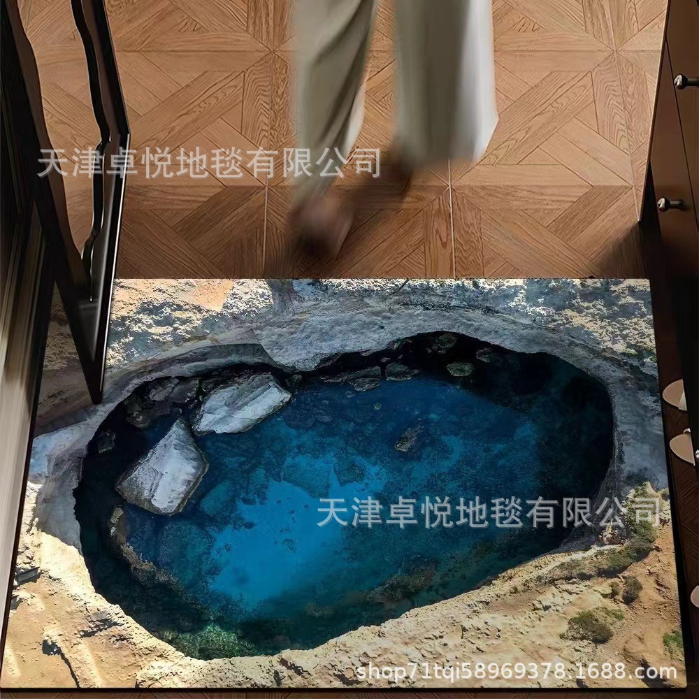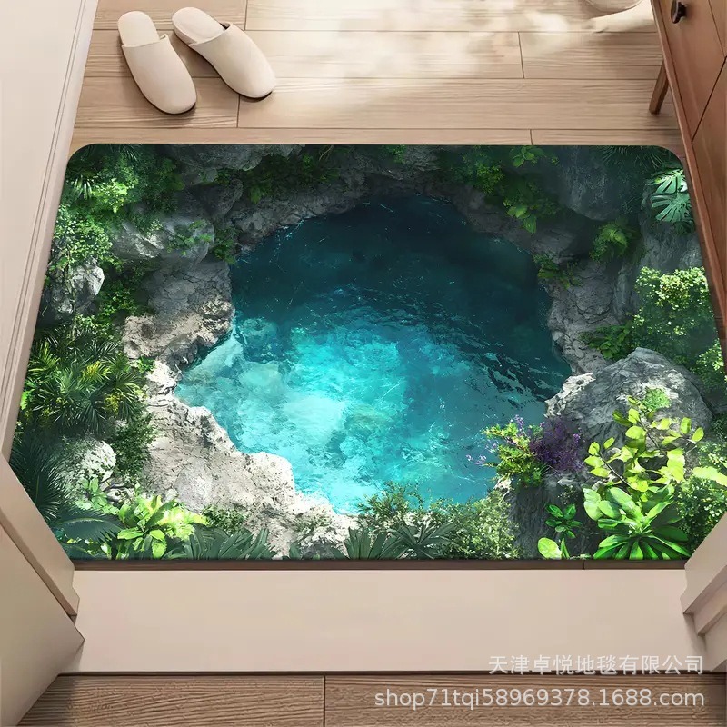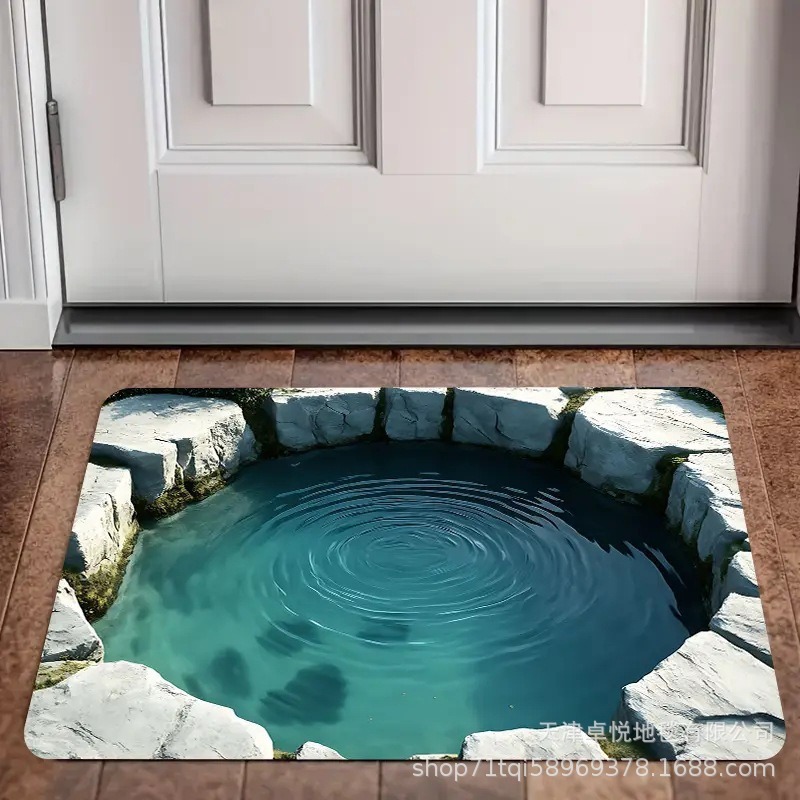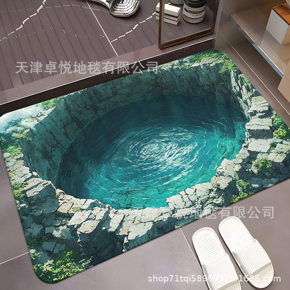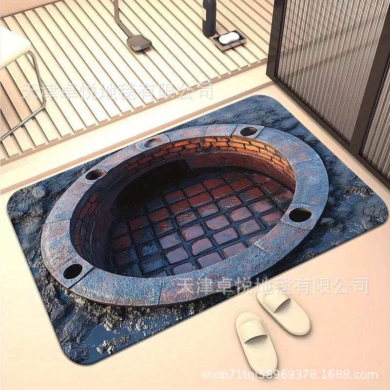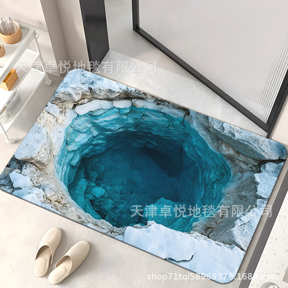 TEMU 국경 간 3D 입체 시력 트랩 바닥 매트 입구 문 얼룩 방지 및 내마모성 도어 매트 욕실 흡수성 미끄럼 방지 매트스토어 가기