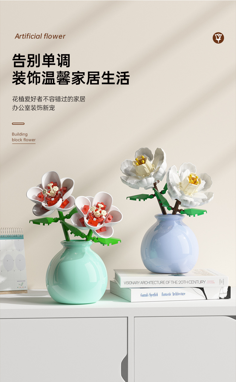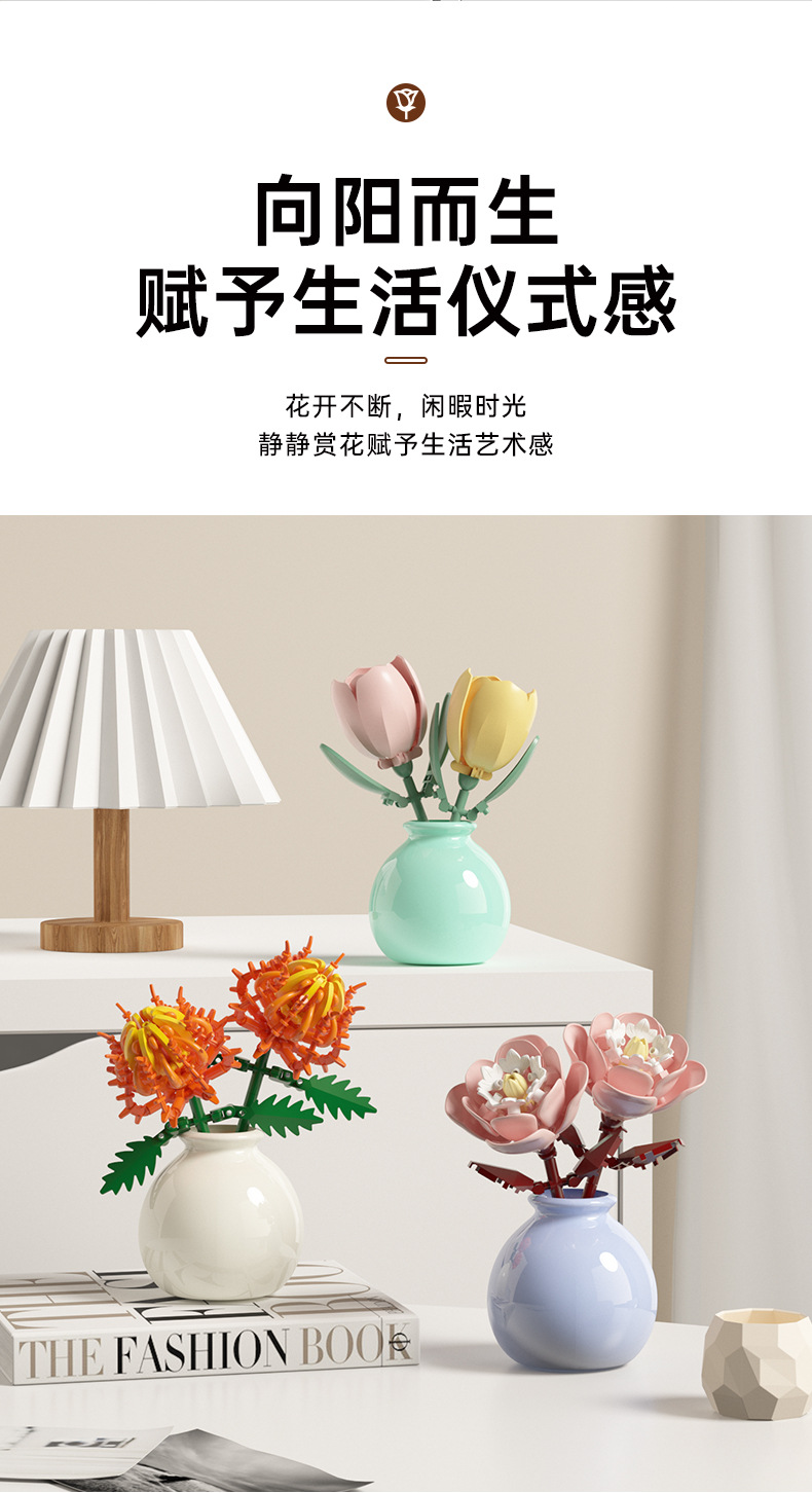 어린이 교육 빌딩 블록 꽃 장난감 시뮬레이션 장미 백합 불멸의 꽃 데스크탑 장식품 유치원 선물스토어 가기