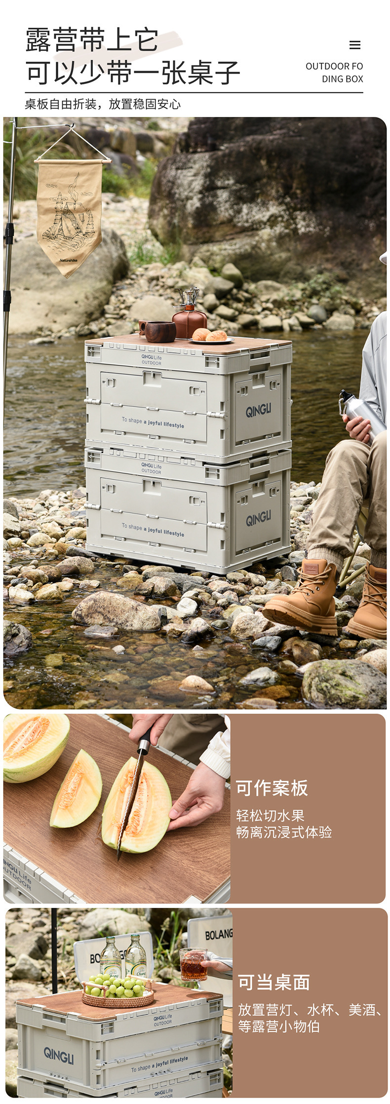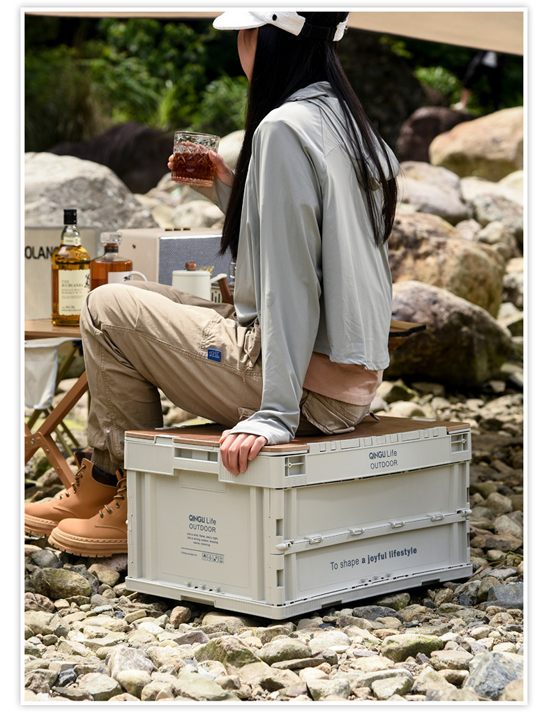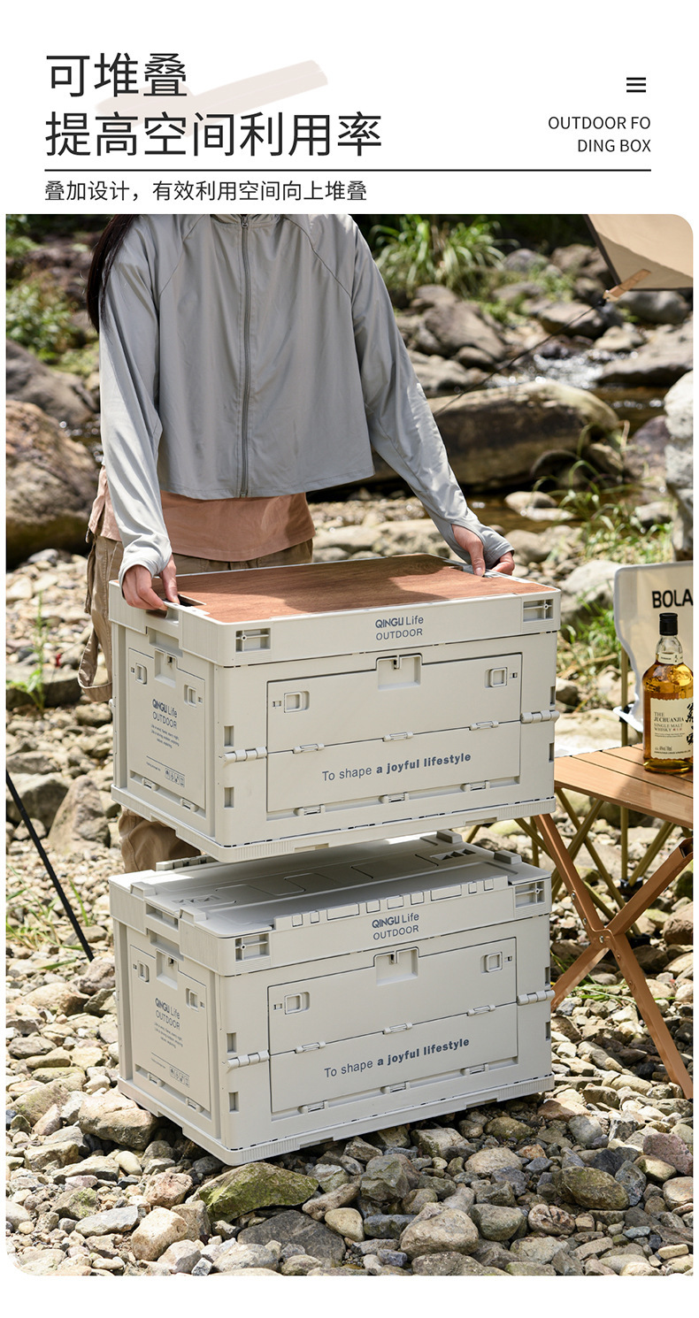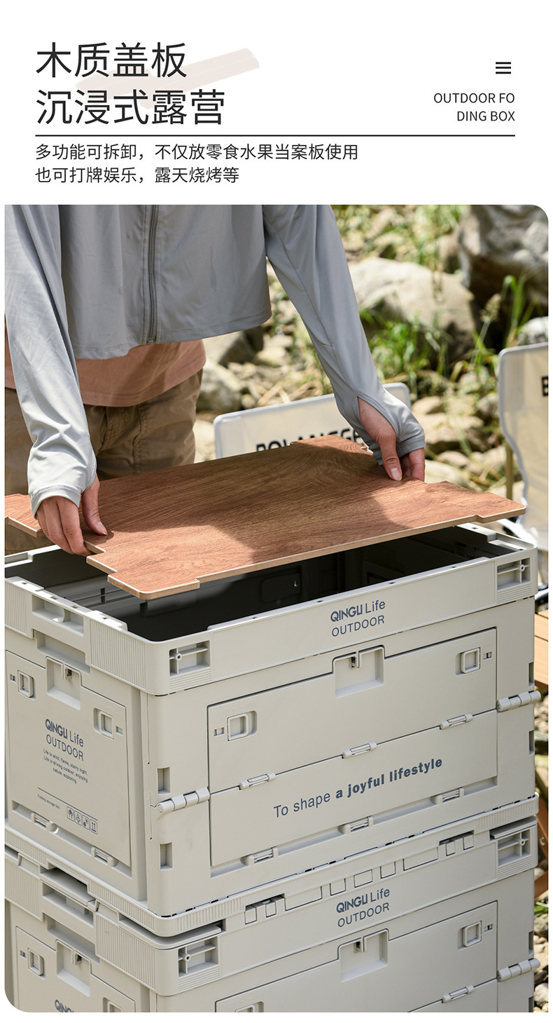 야외 접이식 캠핑 보관 상자 다기능 자동차 휴대용 두꺼운 나무 뚜껑 보관 상자 캠핑 보관 상자스토어 가기