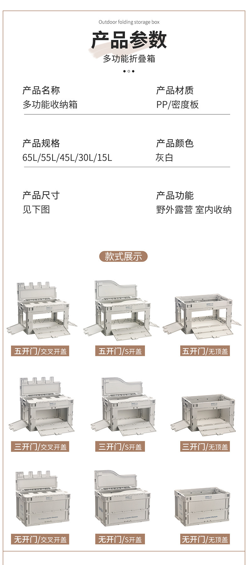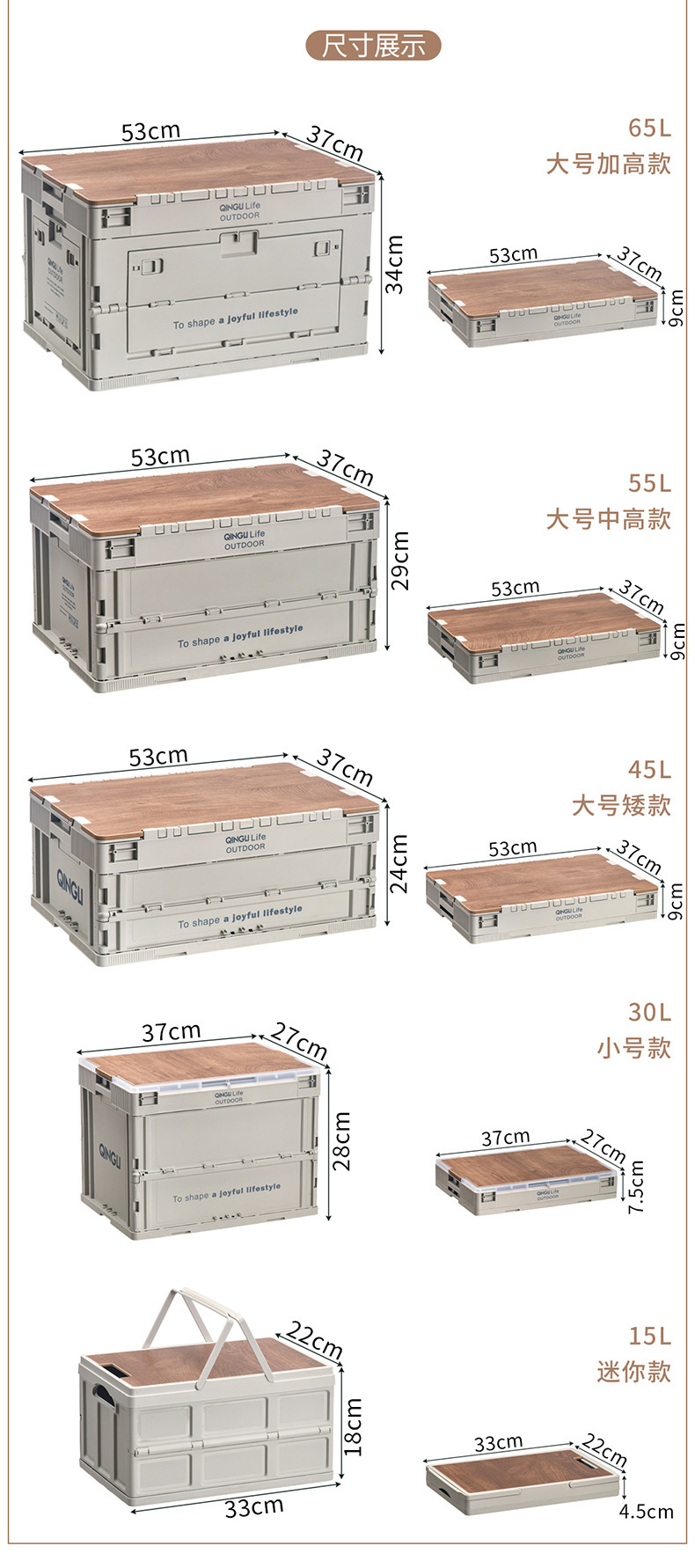 • 65L 산업 스타일 그레이 + 5도어 + 크로스 커버 + 목재 커버