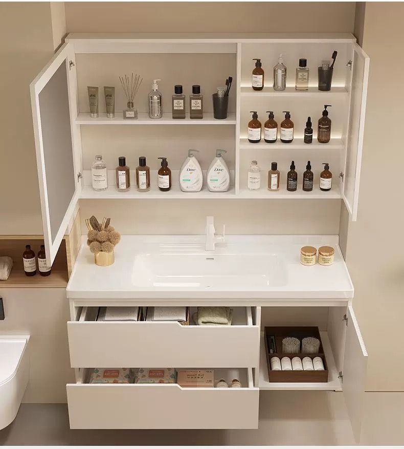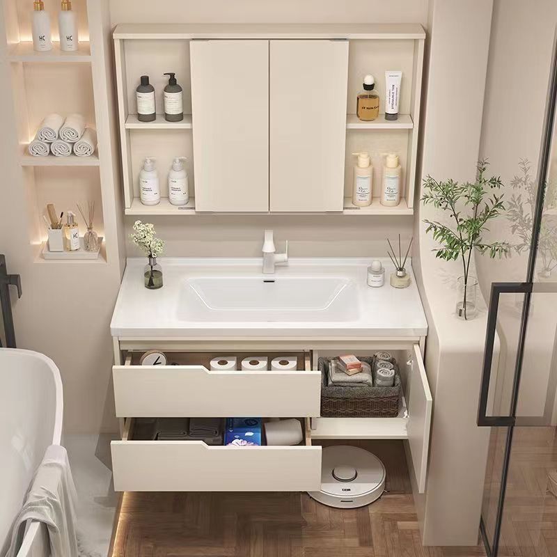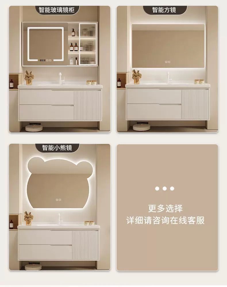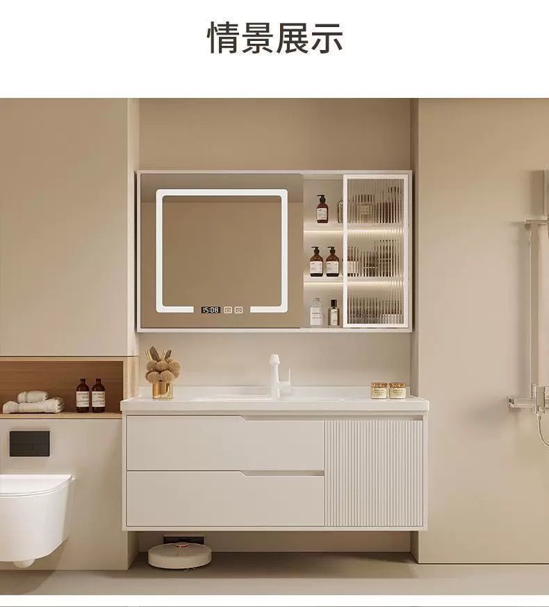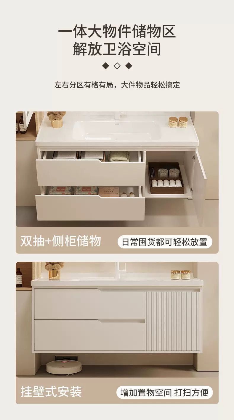 오크 욕실 캐비닛 욕실 조합 크림 핸드 워시 세면대 스마트 심플 세면대 세라믹 일체형스토어 가기