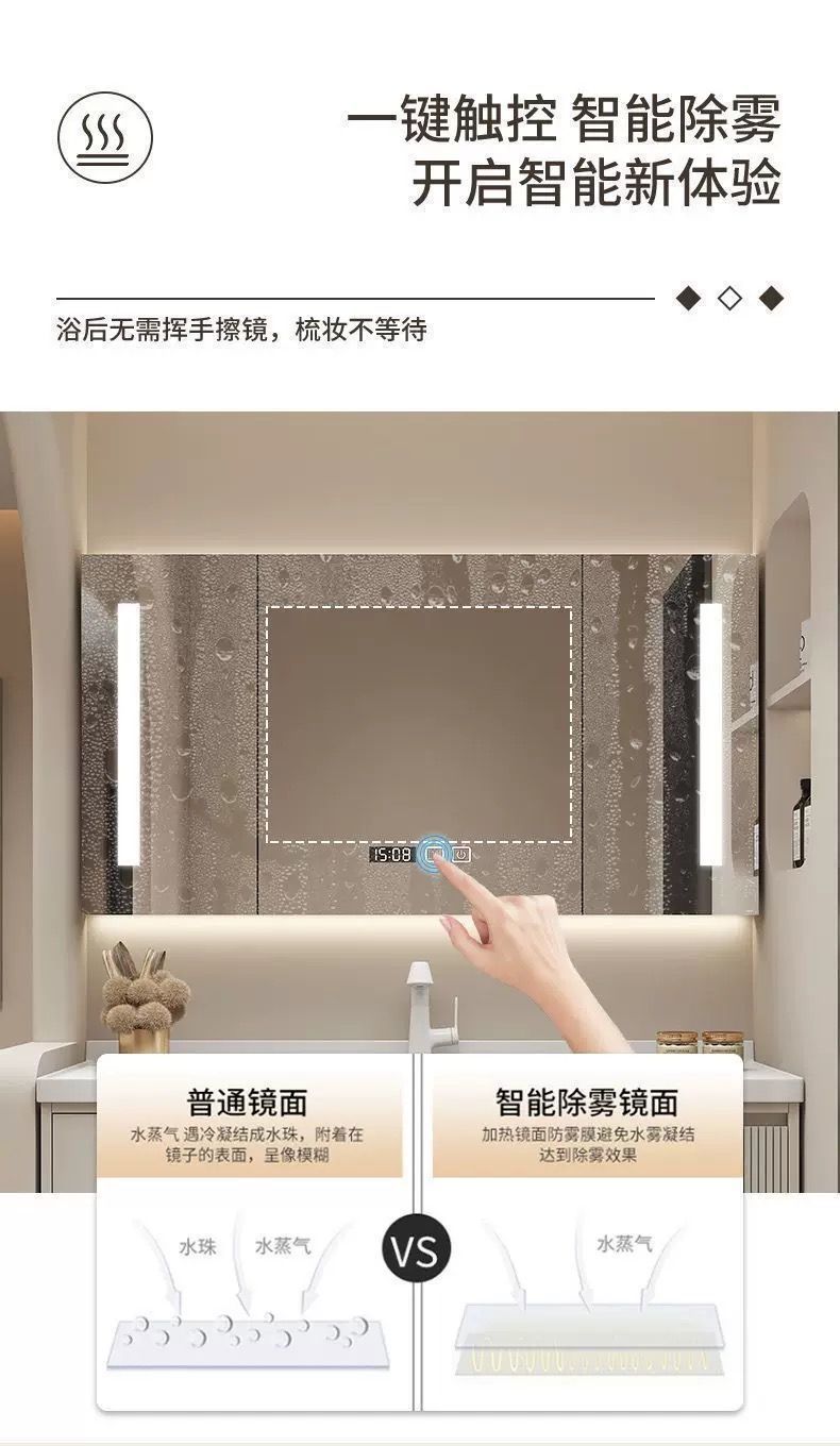 • 오크 라미네이트 반밀폐형 스마트 거울 캐비닛