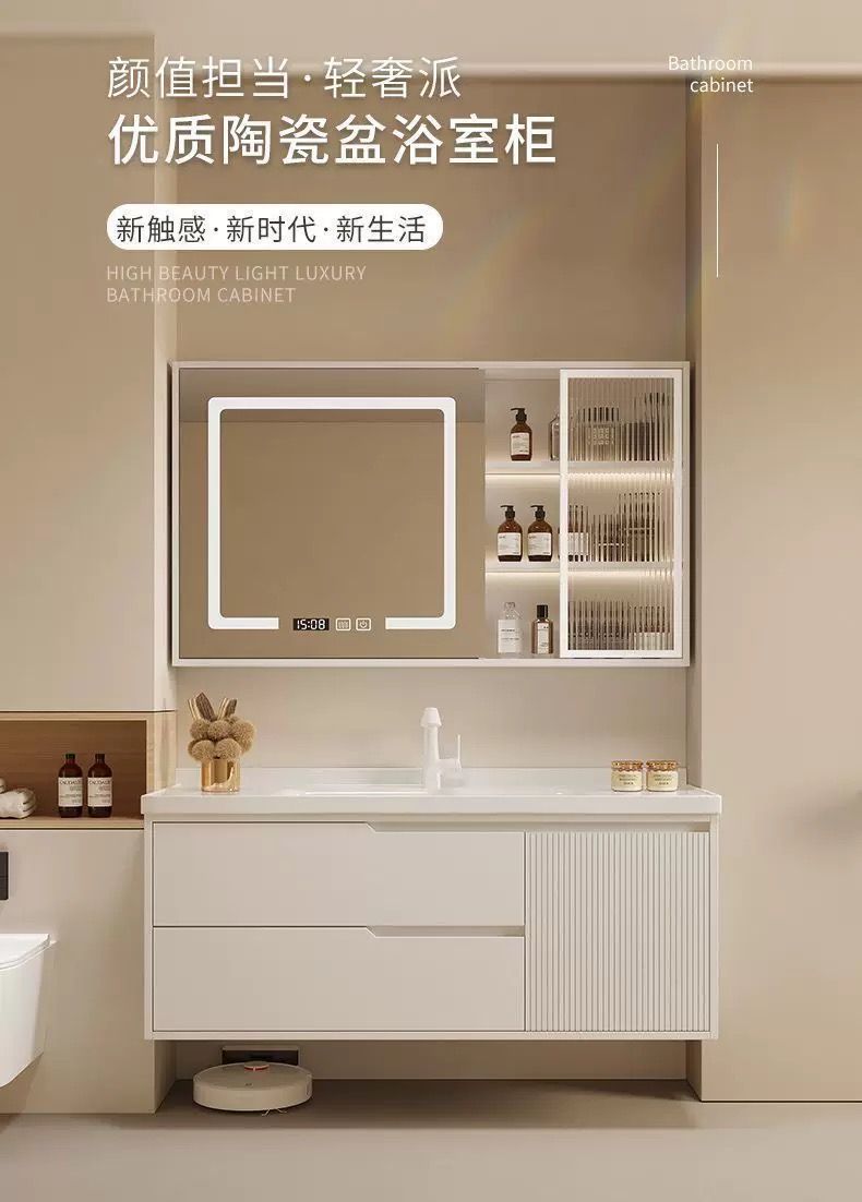 오크 욕실 캐비닛 욕실 조합 크림 핸드 워시 세면대 스마트 심플 세면대 세라믹 일체형