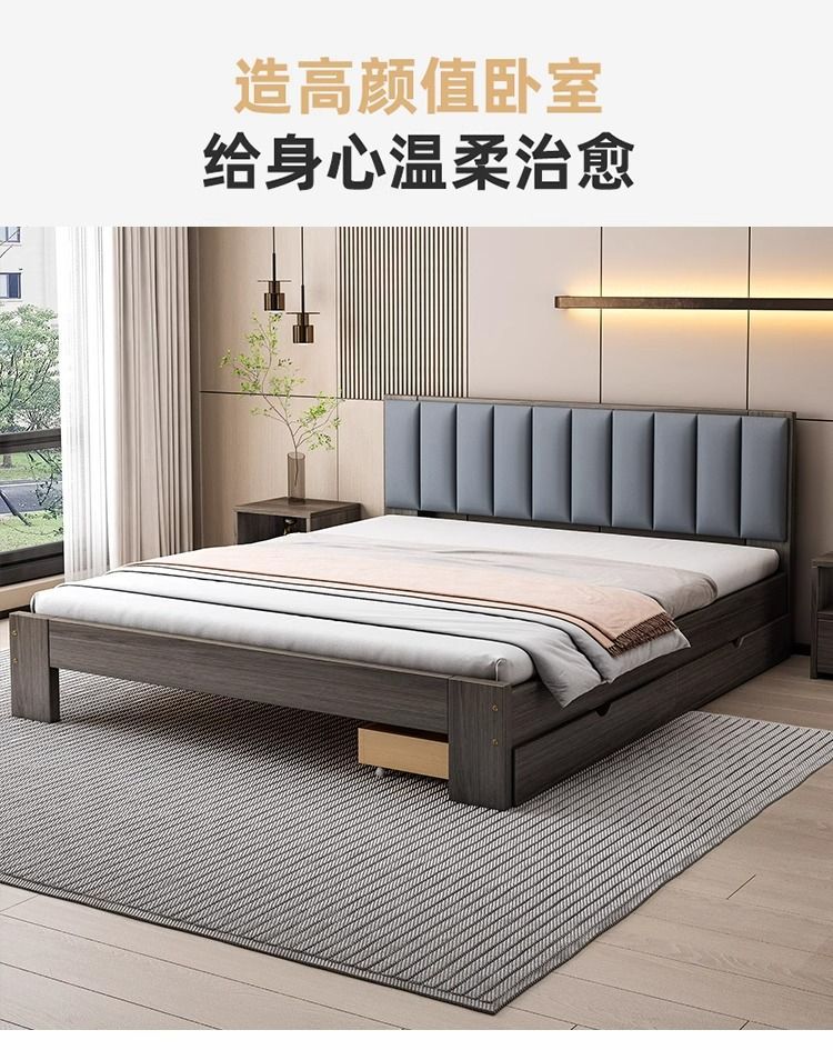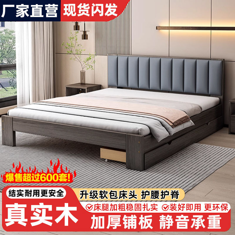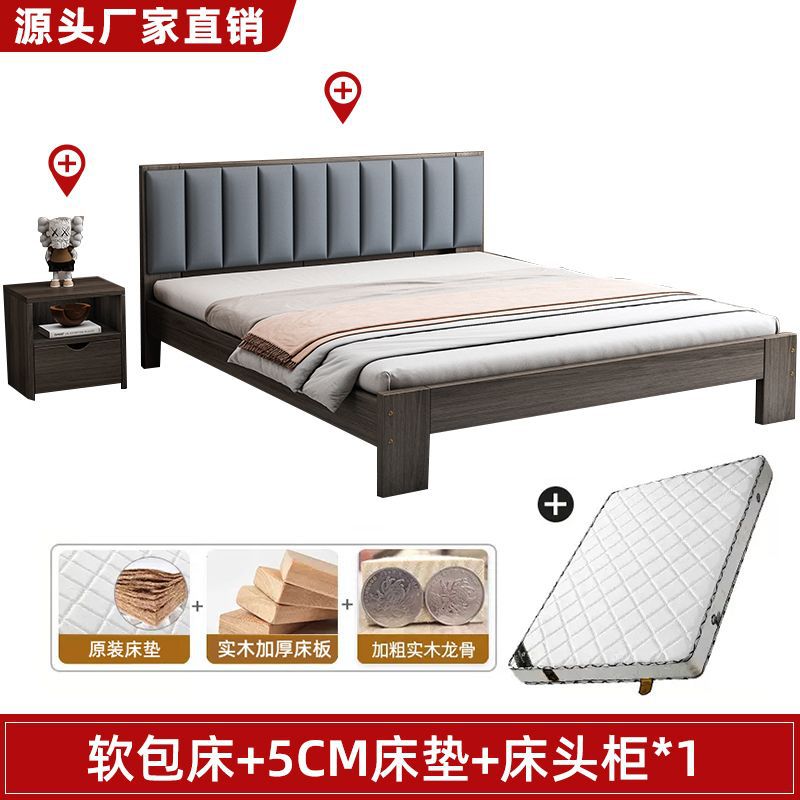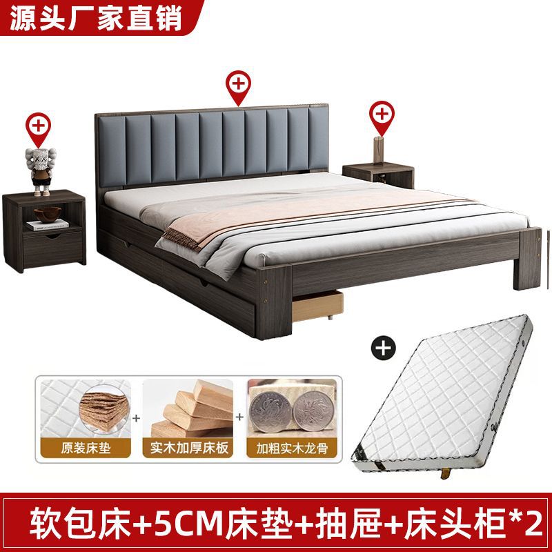 원목 소프트 침대 모던 1.5 가정용 1.8 더블 침대 마스터 침실 1.2 임대실 심플 싱글 침대 풀세트스토어 가기