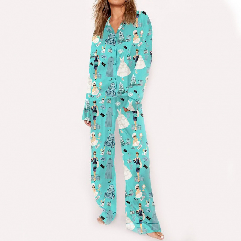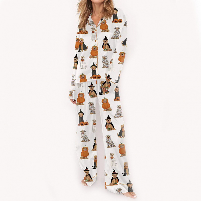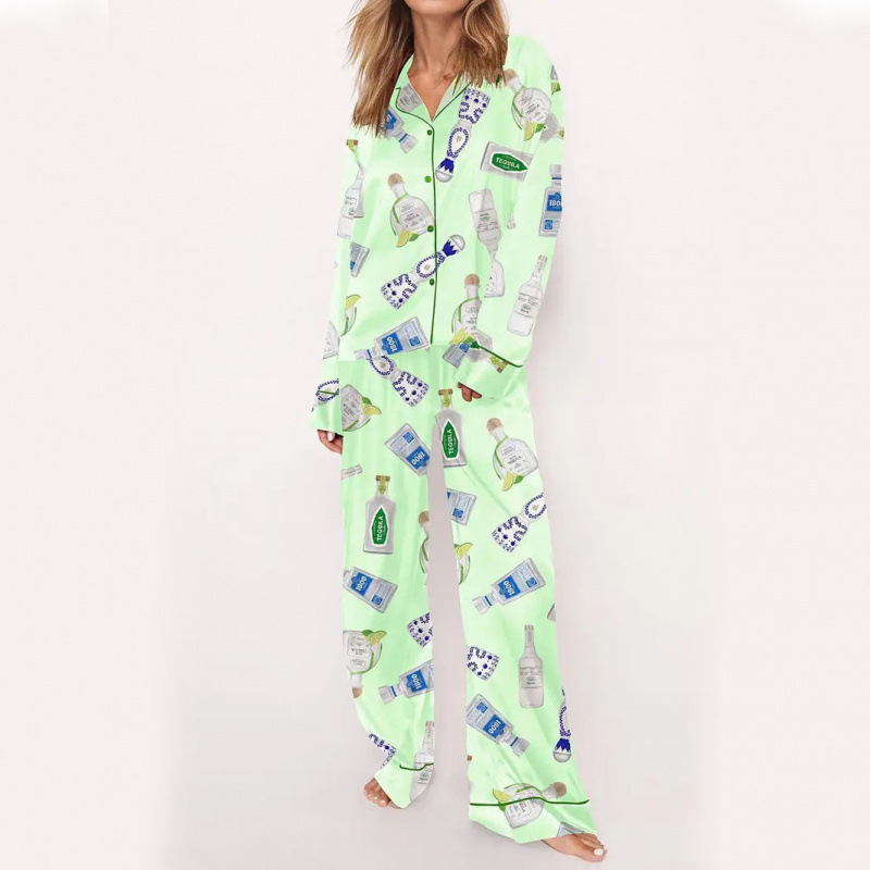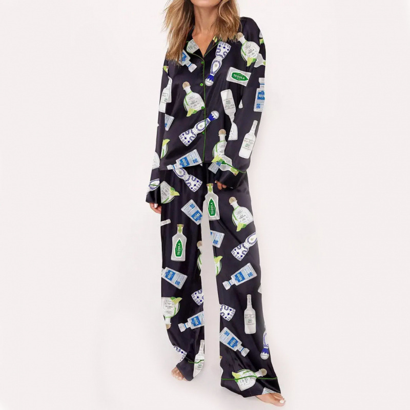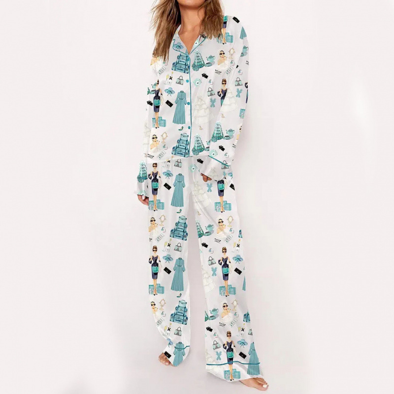 커플을 위한 크로스보더 3D 디지털 프린트 라펠 긴팔 홈웨어 파자마 세트, 긴팔 바지, 맞춤형 사진스토어 가기
