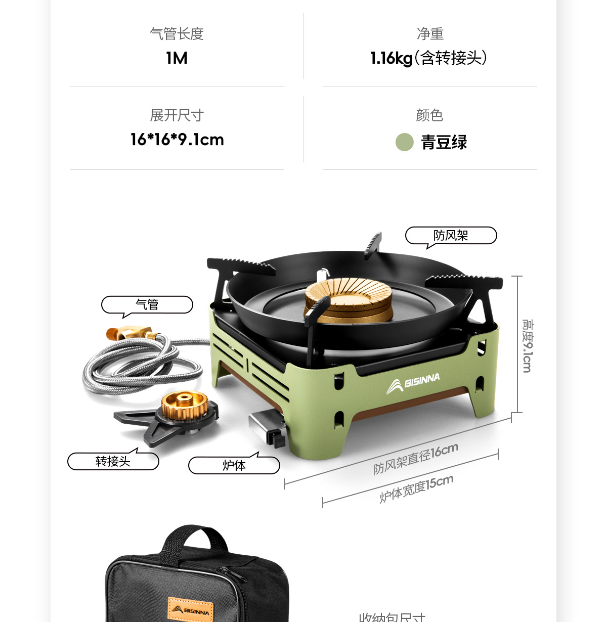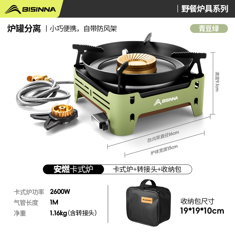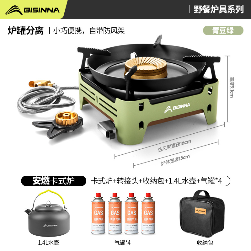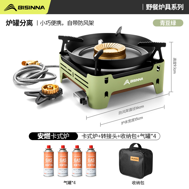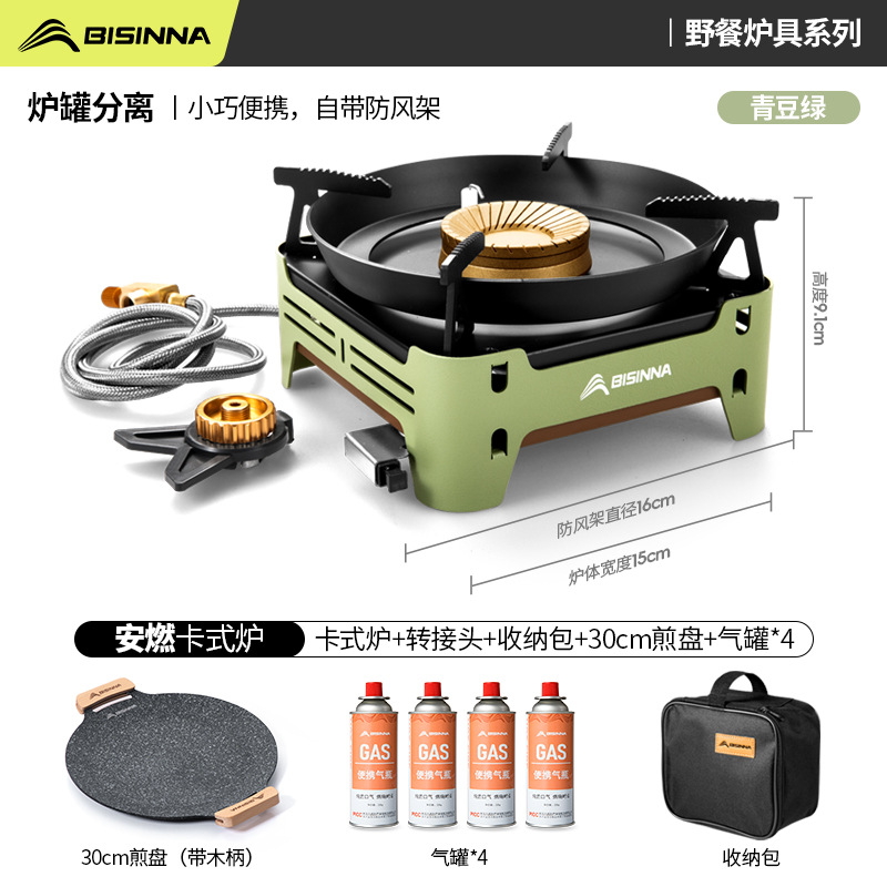 • 휴대용 에너지 절약형 스토브 [녹색] + 30cm 베이킹 팬 + 카세트 가스통 4병