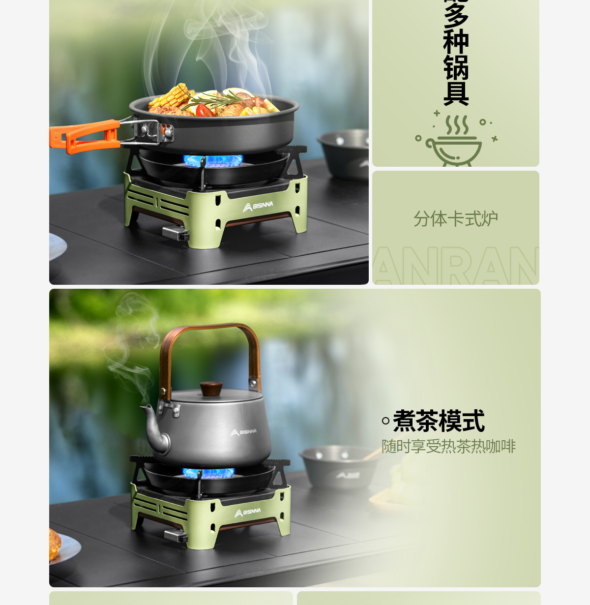 스플릿 카세트 스토브, 새로운 야외 차 스토브, 가스 스토브, 휴대용 캠핑 및 피크닉 장비, 조리기구 전체 세트스토어 가기