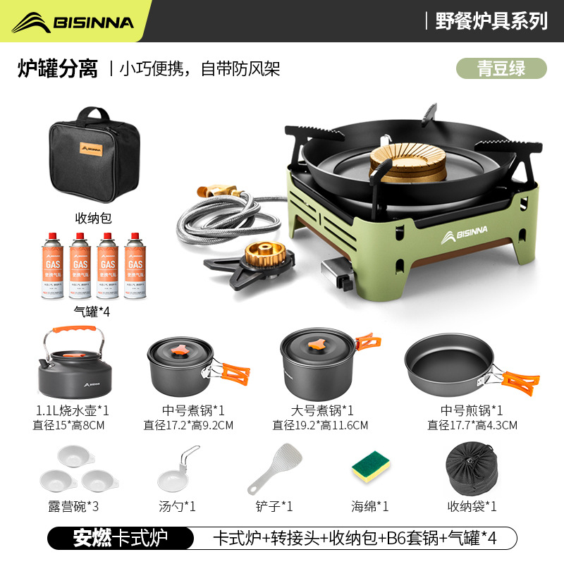 • 휴대용 에너지 절약형 난로 [청록색] + B7 냄비 세트 + 카세트 가스통 4병