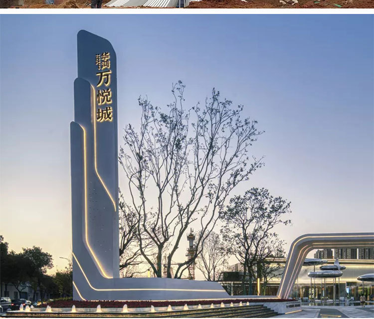 대형 스테인레스 스틸 정신 요새 조각 명소 도시 표지판 특별한 모양의 발광 수직 랜드마크 빌딩 마을 표지판스토어 가기