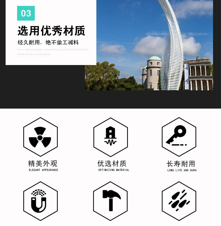 대형 스테인레스 스틸 정신 요새 조각 명소 도시 표지판 특별한 모양의 발광 수직 랜드마크 빌딩 마을 표지판