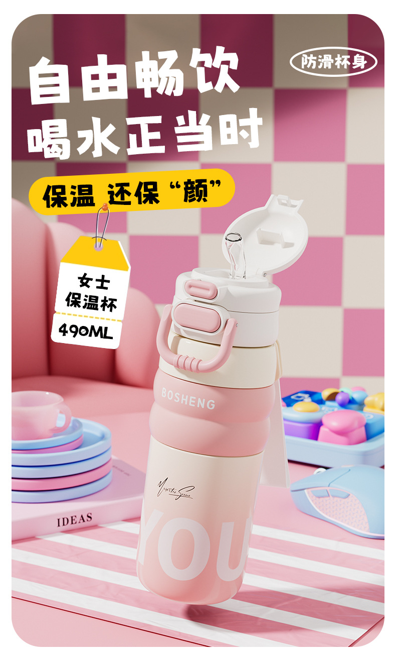 보온 컵 316 스테인레스 스틸 밀짚 컵 소녀의 멋진 여름 더블 음주 휴대용 콜드 컵 도매스토어 가기