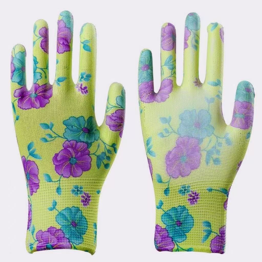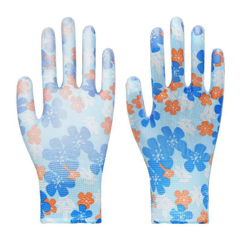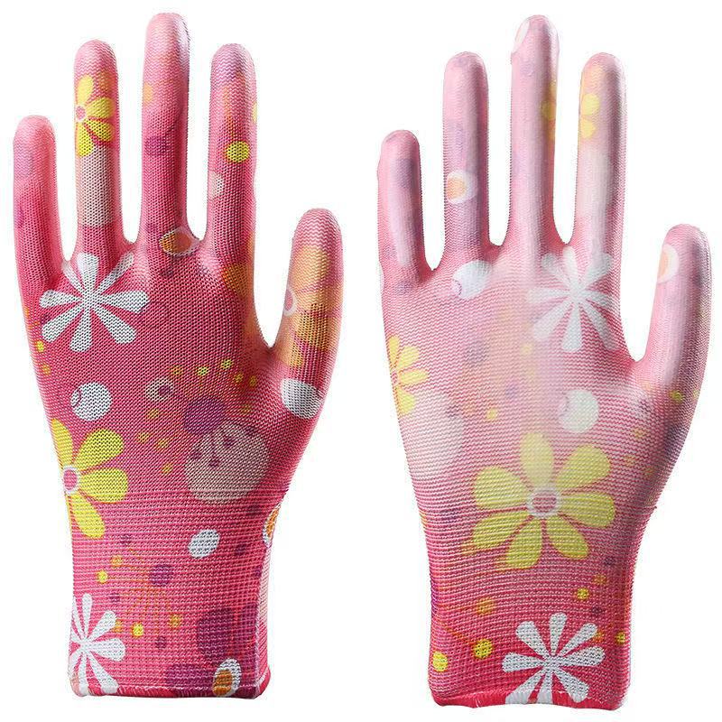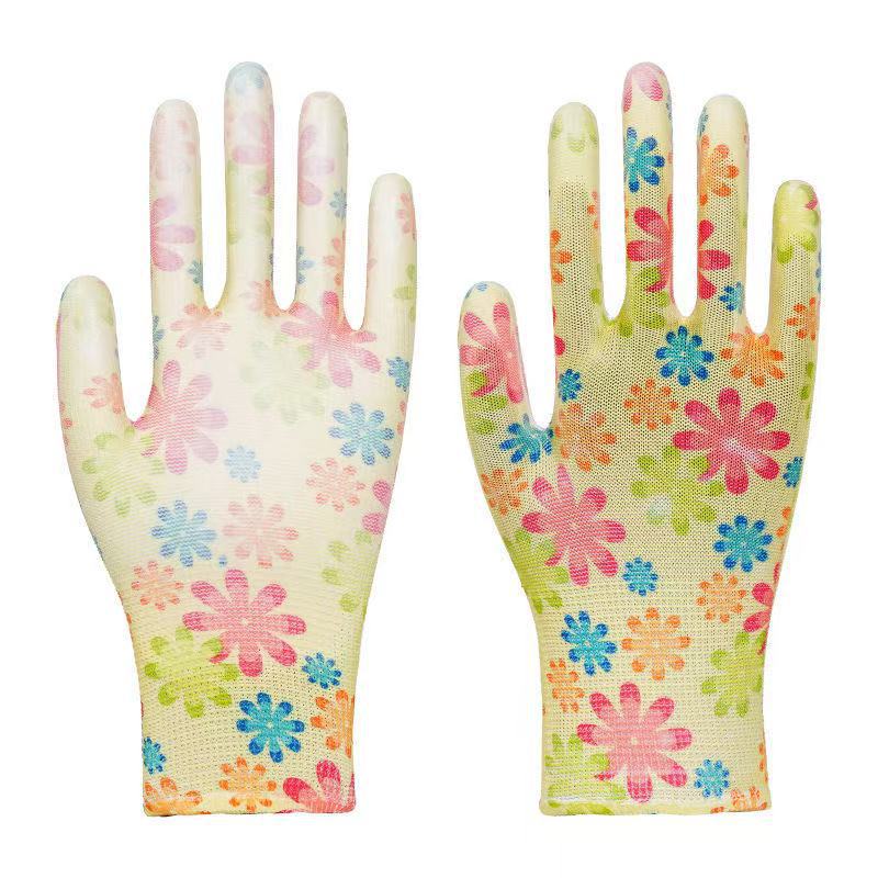 PU 코팅 손바닥 인쇄 나일론 노동 보호 장갑 통기성 미끄럼 방지 내마모성 보호 장갑 원예 및 수확 작업장 작업스토어 가기