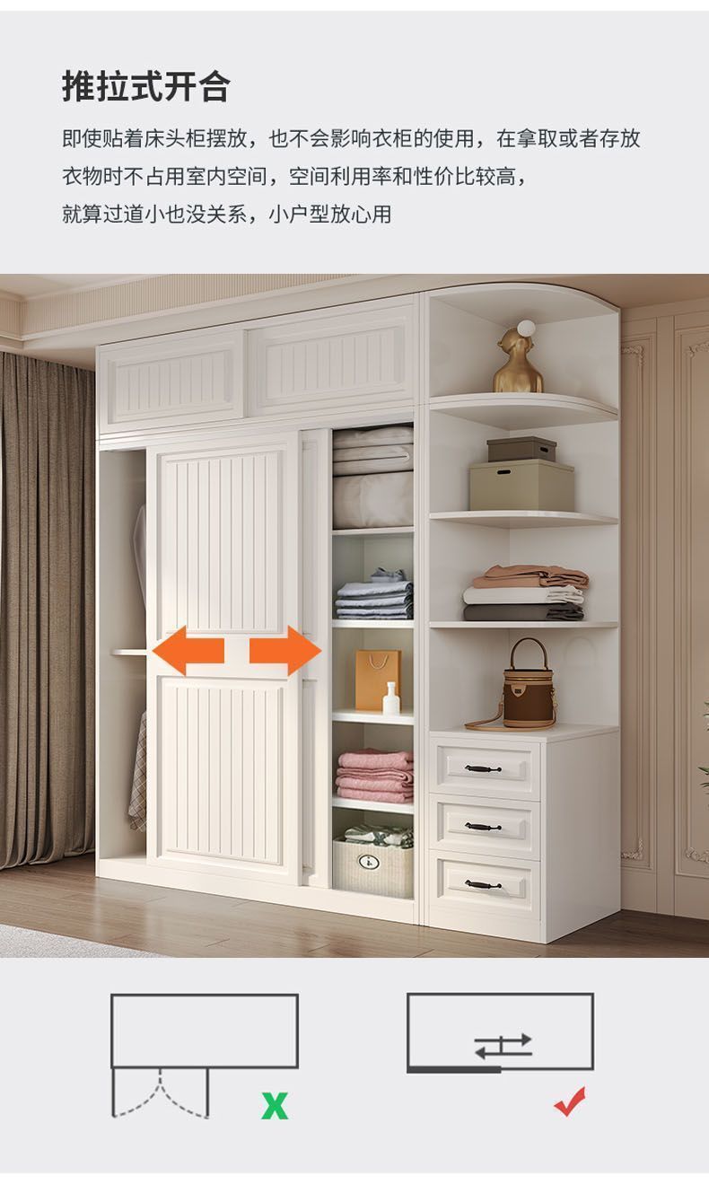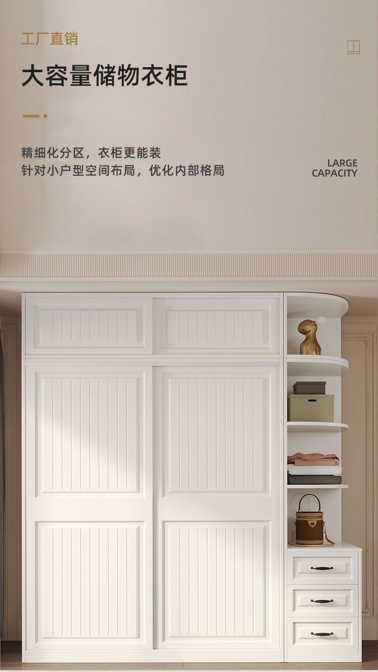 옷장 홈 침실 슬라이딩 도어 간단한 조립 대용량 임대 주택 캐비닛 작은 아파트 보관 캐비닛 대형 옷장