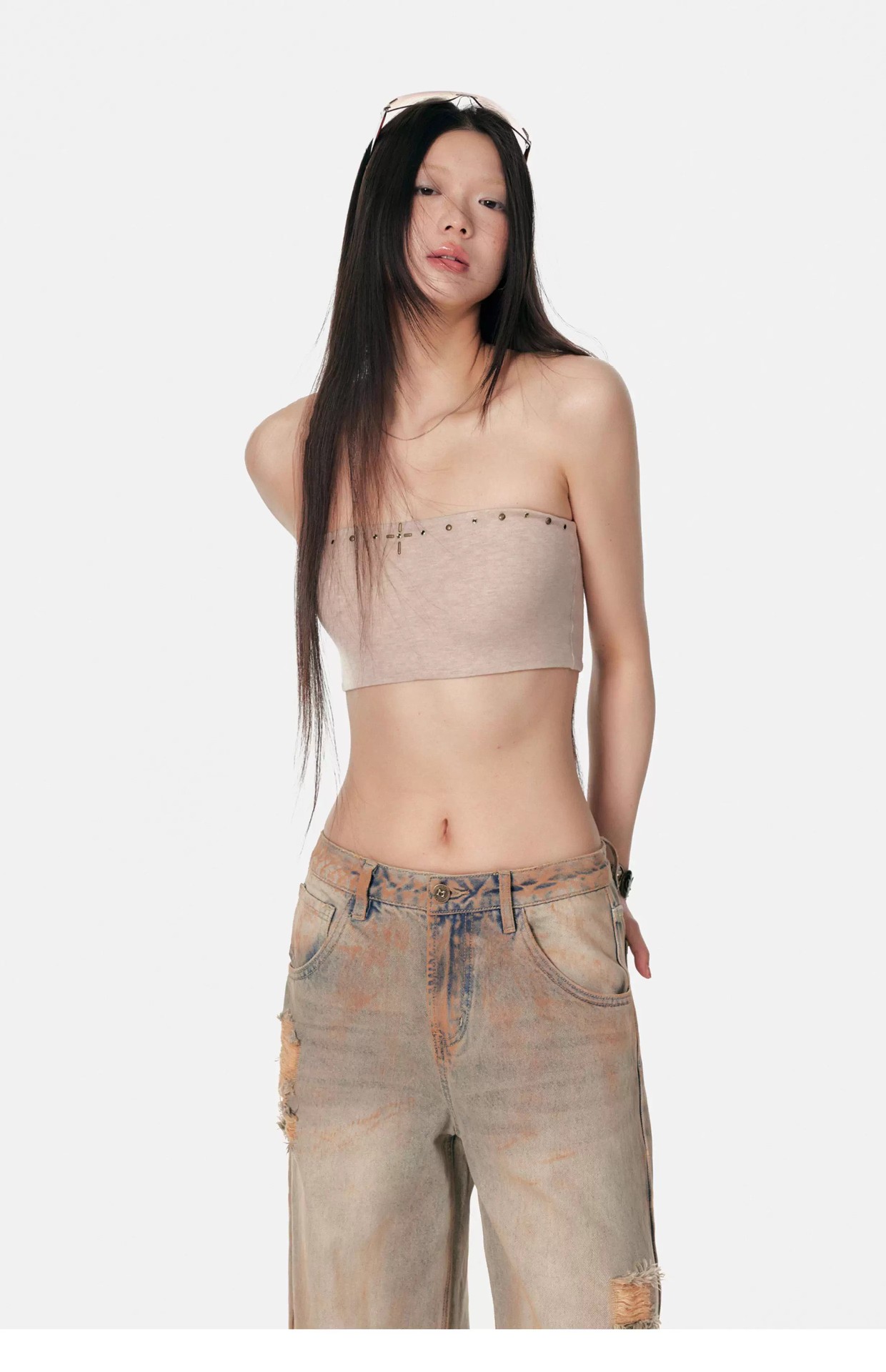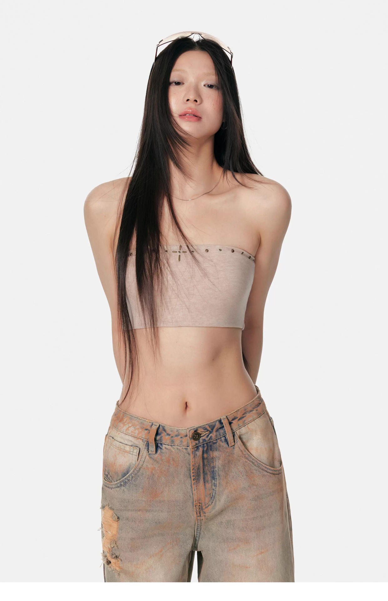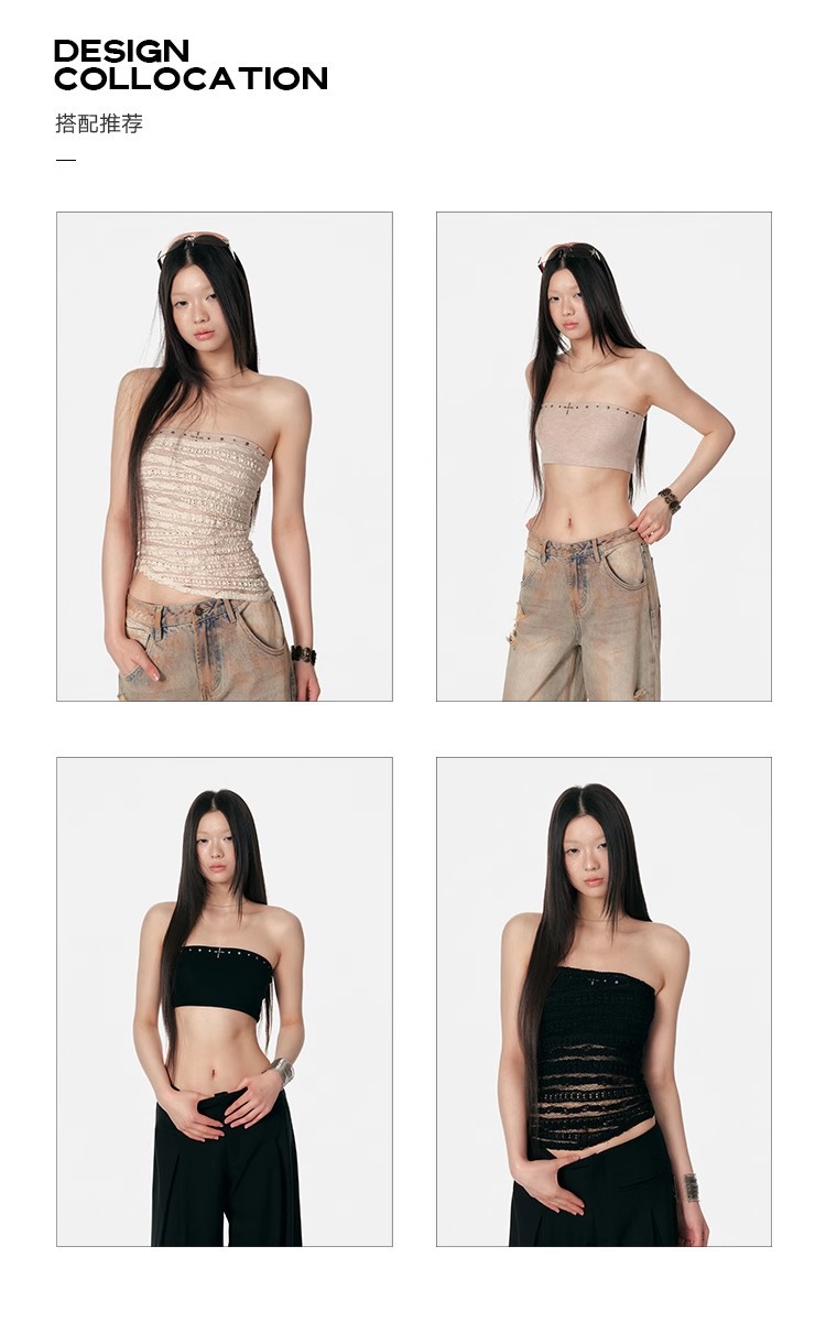 여름 핫걸을 위한 섹시한 핫스터드 아름다운 등 튜브탑, 슬림핏 레이스 이너탑, 레이어드 가슴랩 투피스 세트스토어 가기