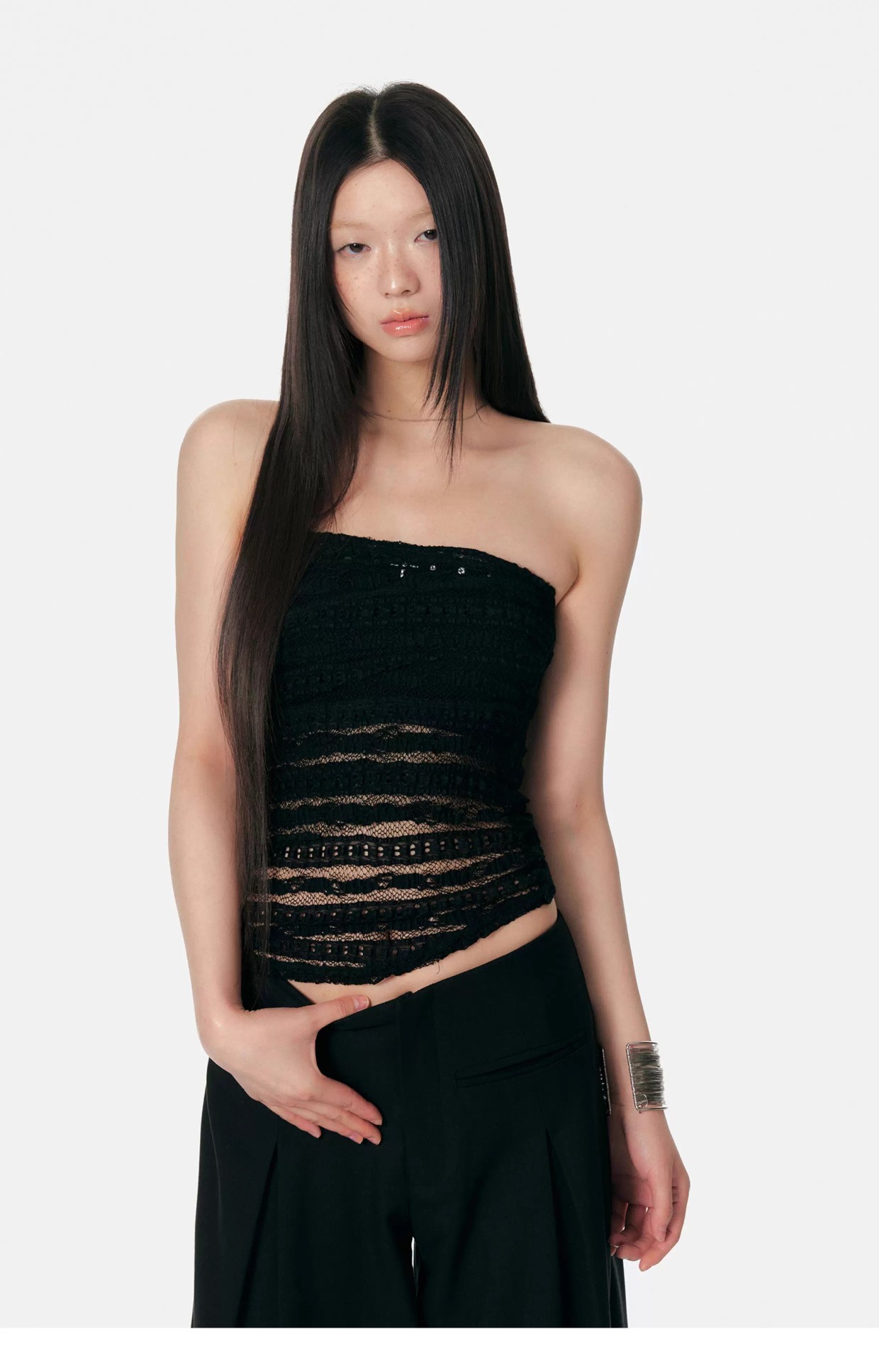 여름 핫걸을 위한 섹시한 핫스터드 아름다운 등 튜브탑, 슬림핏 레이스 이너탑, 레이어드 가슴랩 투피스 세트