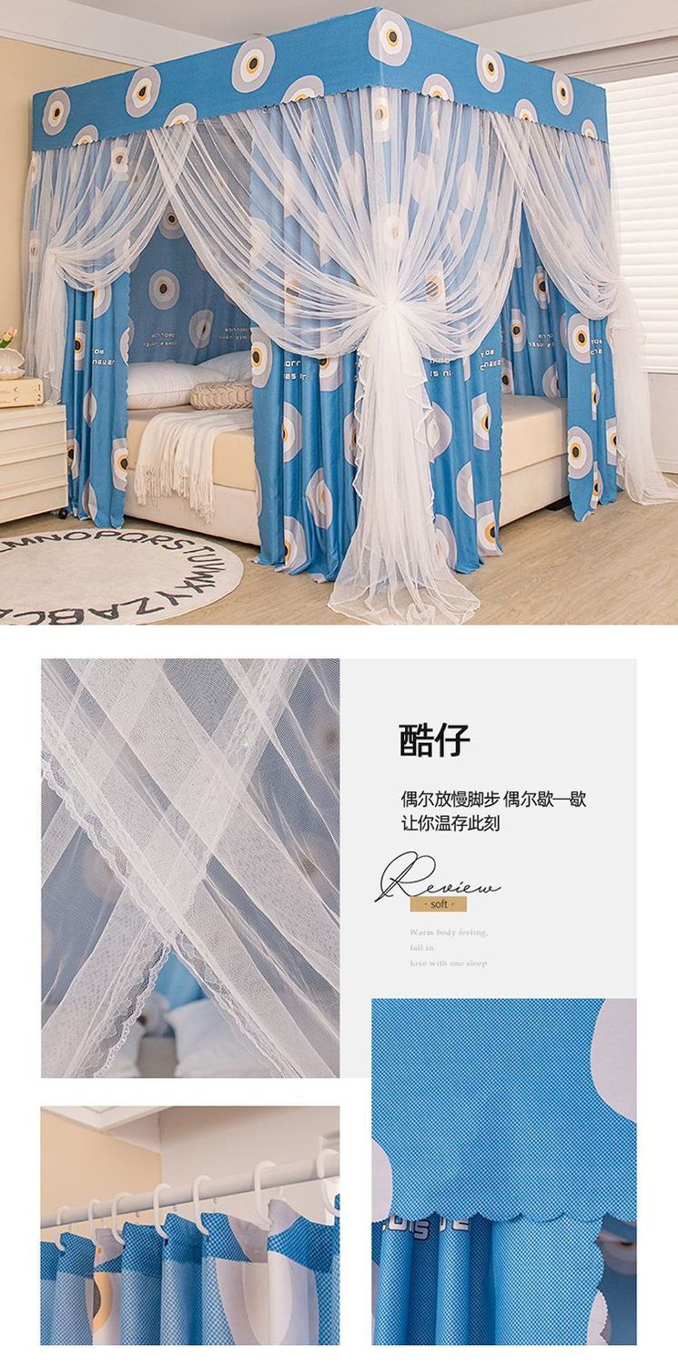 공주 스타일 침대 커튼 가정용 침실 방풍 밀폐형 차광 두꺼운 침대 커튼 3 도어 모기장 침구스토어 가기