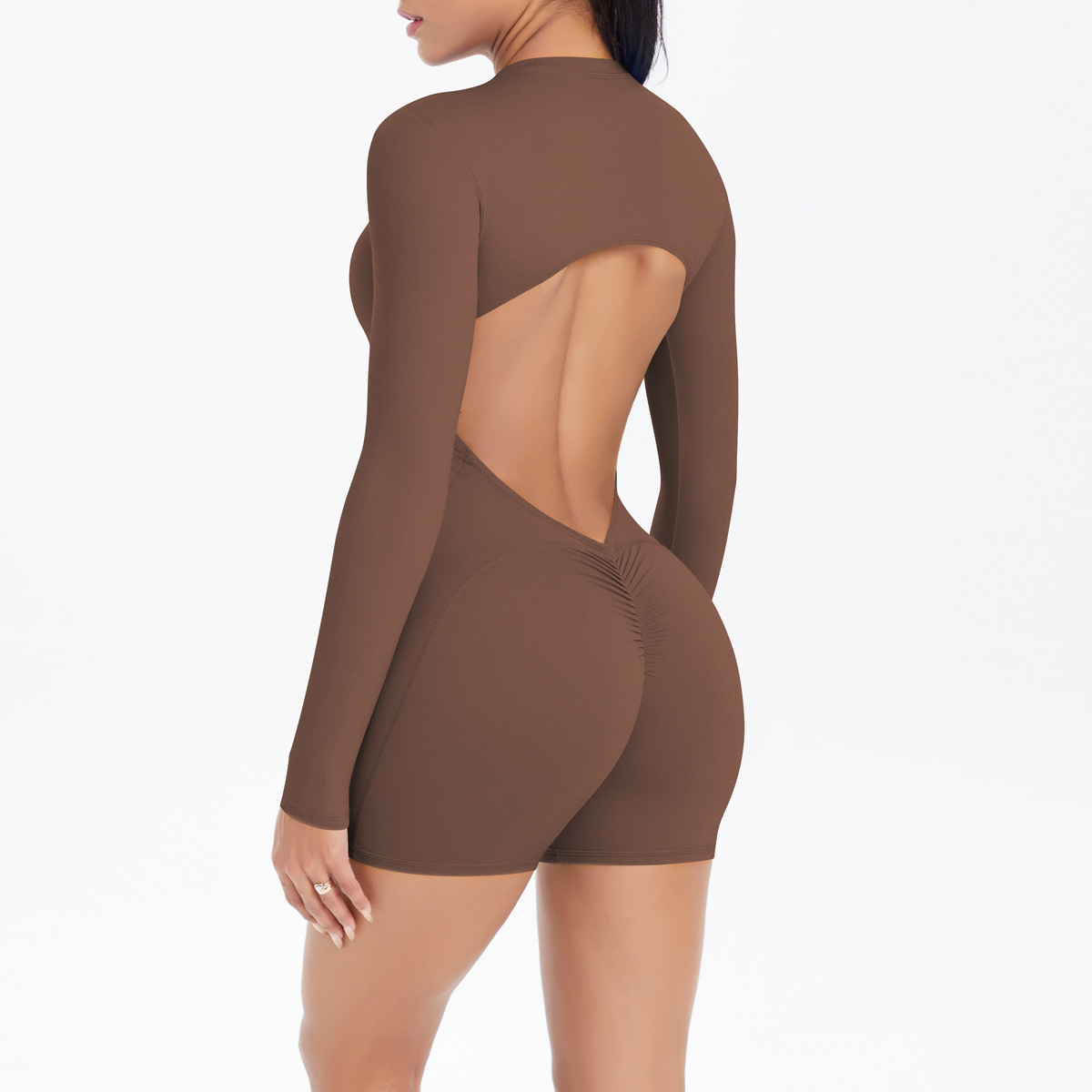 유럽과 미국의 속이 빈 아름다운 등 반 오픈 지퍼 점프 슈트 복숭아 엉덩이 리프팅 스포츠 피트니스 누드 속건성 원피스 요가 슈트