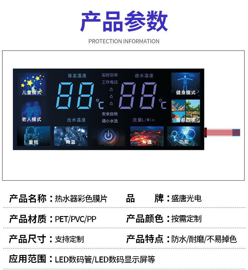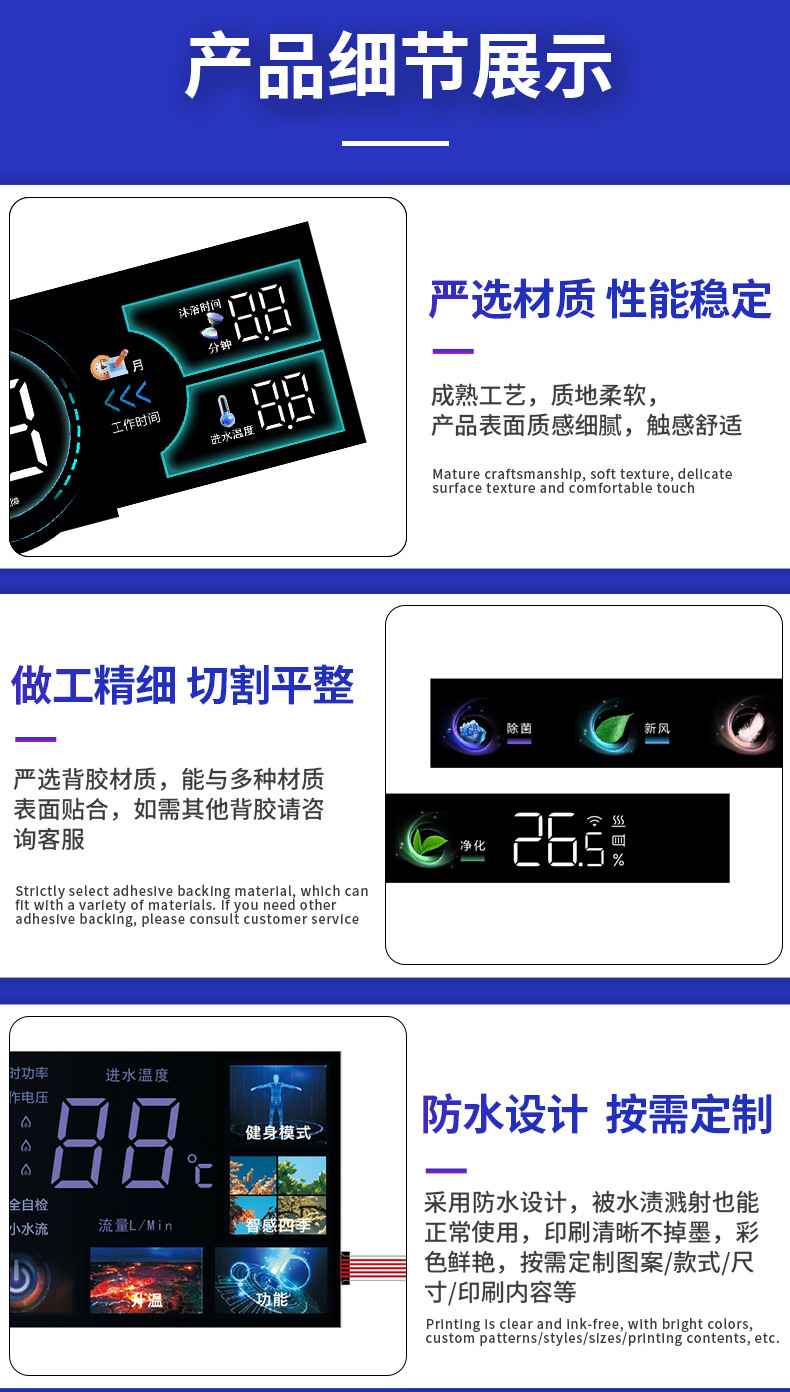 LED 디지털 디스플레이 터치 다이어프램 방수 정수기 커피 머신 디지털 디스플레이 터치 컬러 다이어프램 실크 스크린
