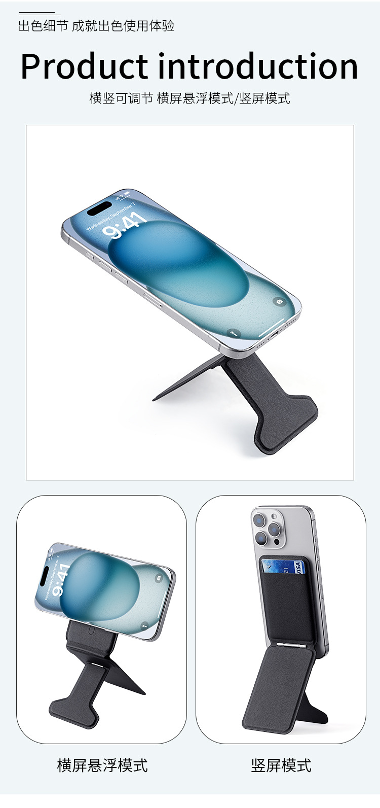 새로운 I자형 수직 카드 셀카봉 휴대폰 홀더 다기능 자기 홀더 카드 홀더 게으른 사람 홀더