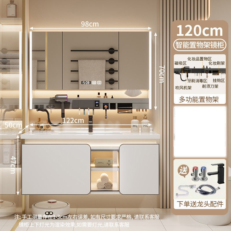 • 스마트 다기능 수납 선반 거울 캐비닛 - 120CM 피부 친화적인 통합 세면대 - 다기능 수도꼭지