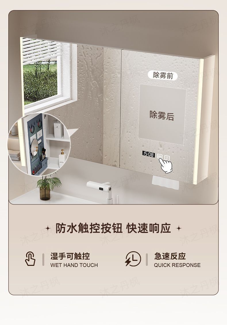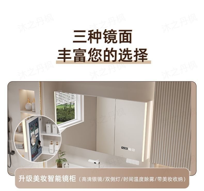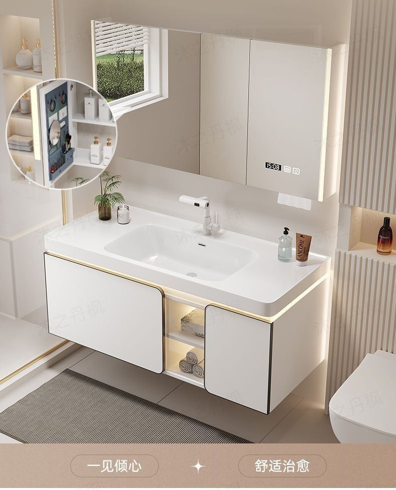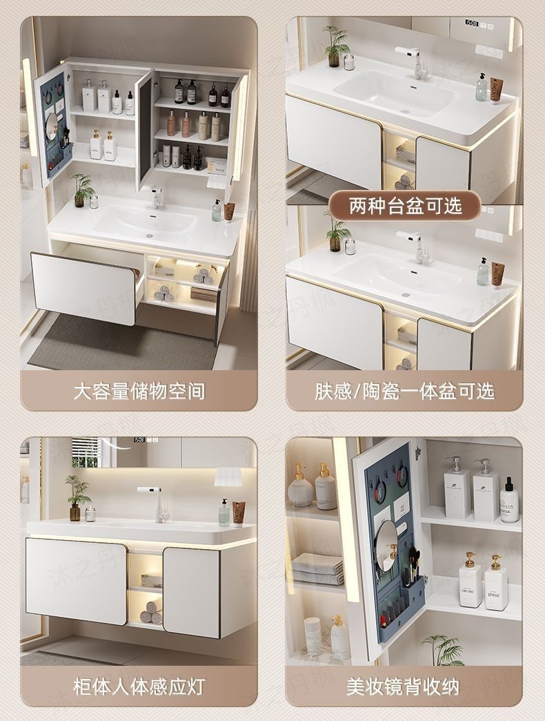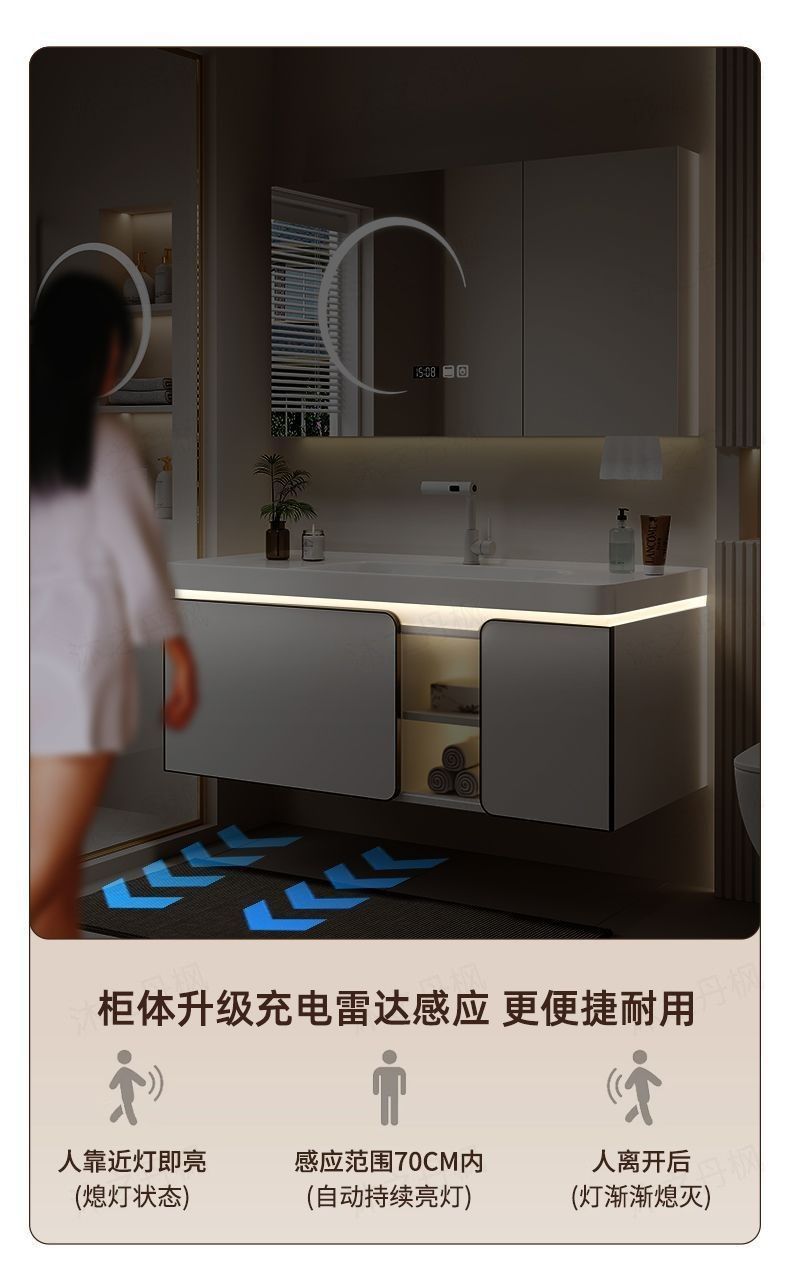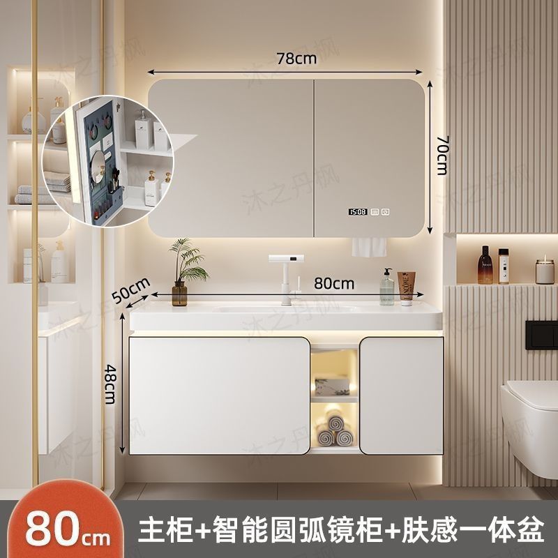 • 지능형 아크 뷰티 수납 거울 캐비닛 - 80CM 피부 느낌 일체형 세면대 - 다기능 수도꼭지
