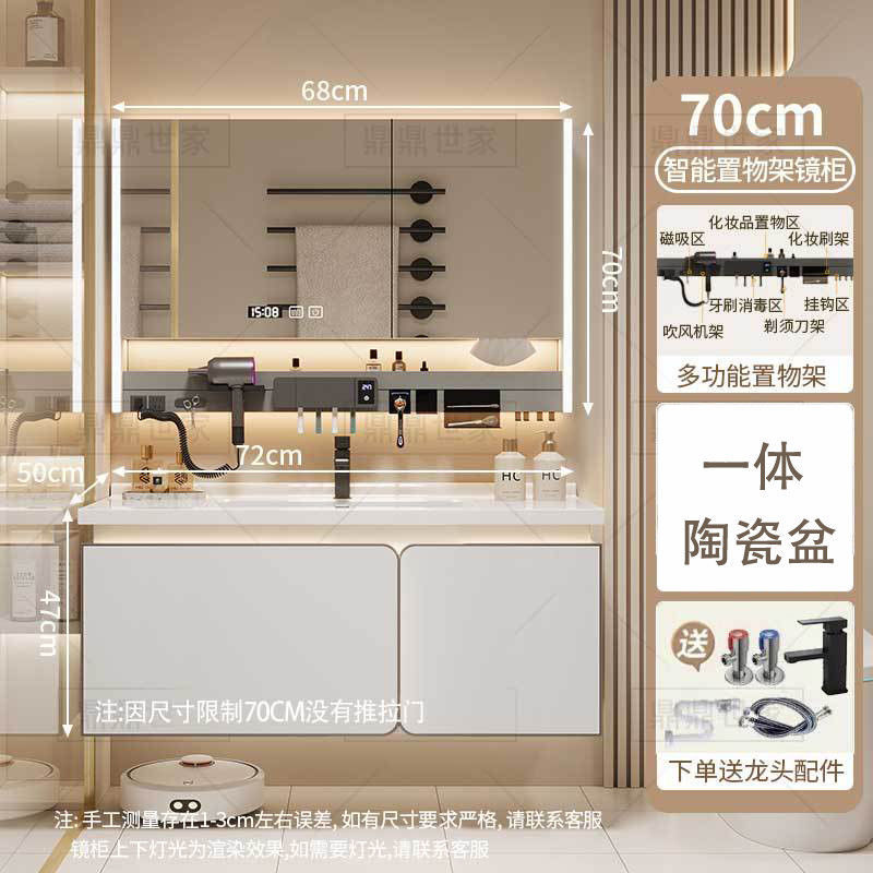 • 스마트 다기능 수납 선반 거울 캐비닛 - 70CM 피부 느낌 통합 세면대 - 다기능 수도꼭지