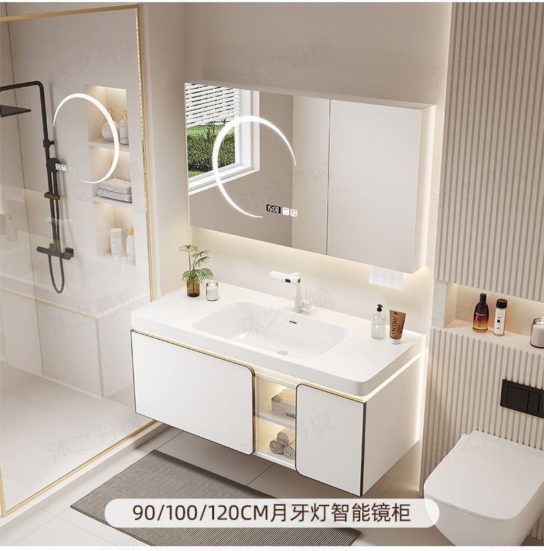 White Moonlight 2025 새로운 간단한 욕실 캐비닛 세라믹 통합 세면대 조합 욕실 세면대 세면대 욕실 캐비닛