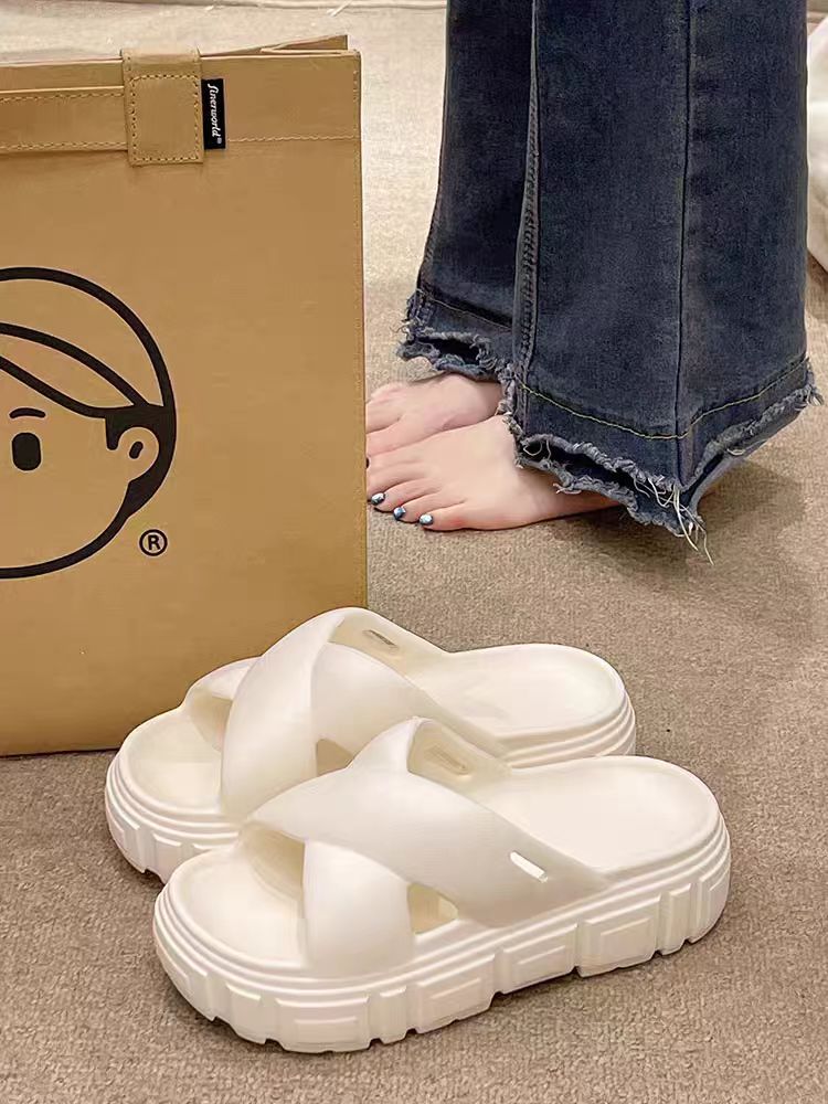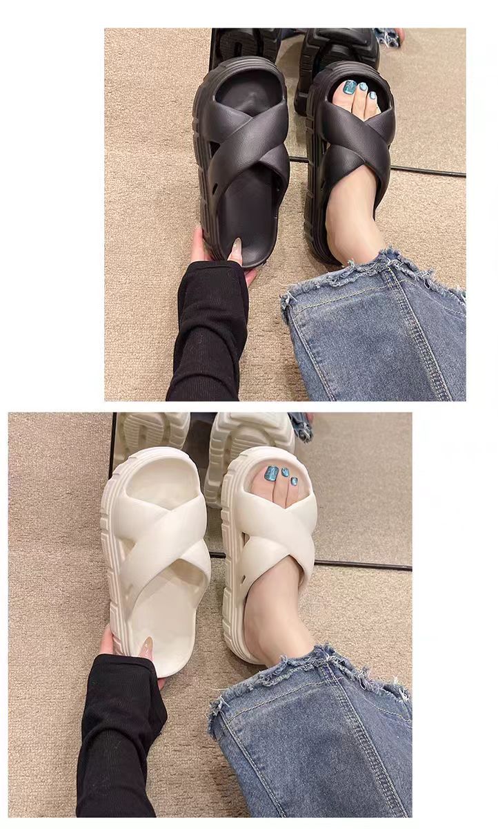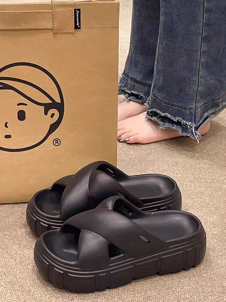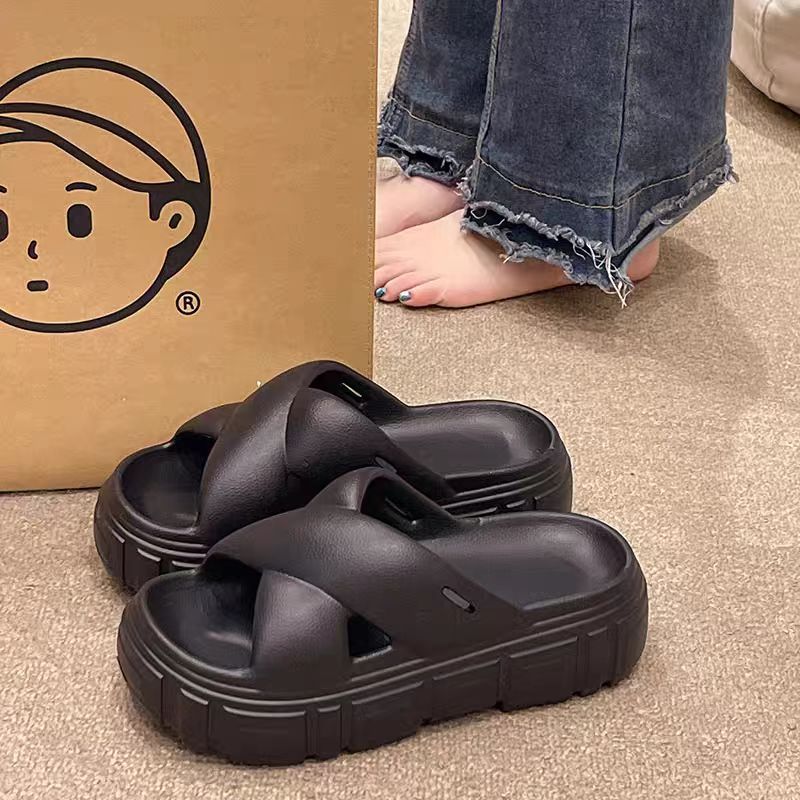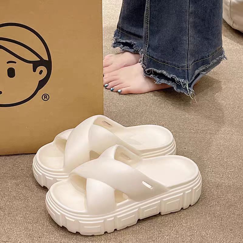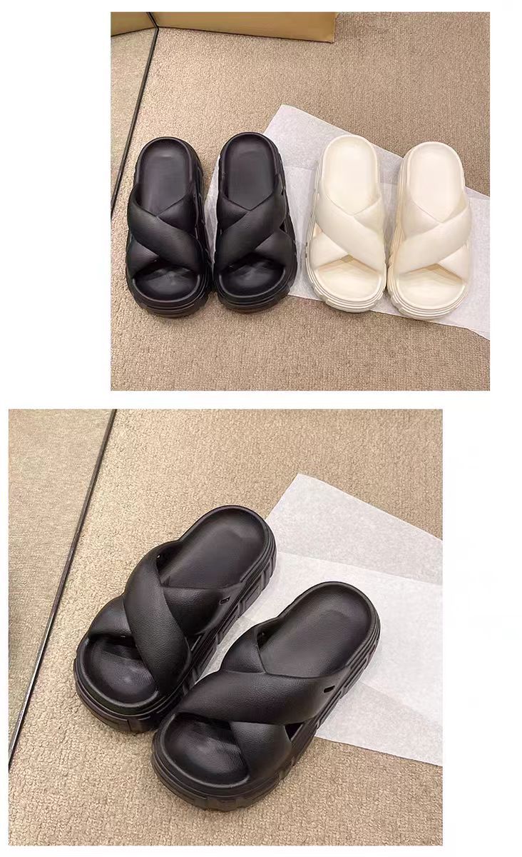 Bulu 항균 및 탈취 슬리퍼 크로스 두꺼운 밑창 플랫폼 빵 신발 2025 새로운 스타일의 실내 및 실외 착용을위한 패션 슬리퍼스토어 가기