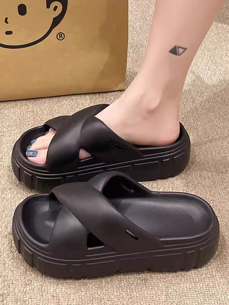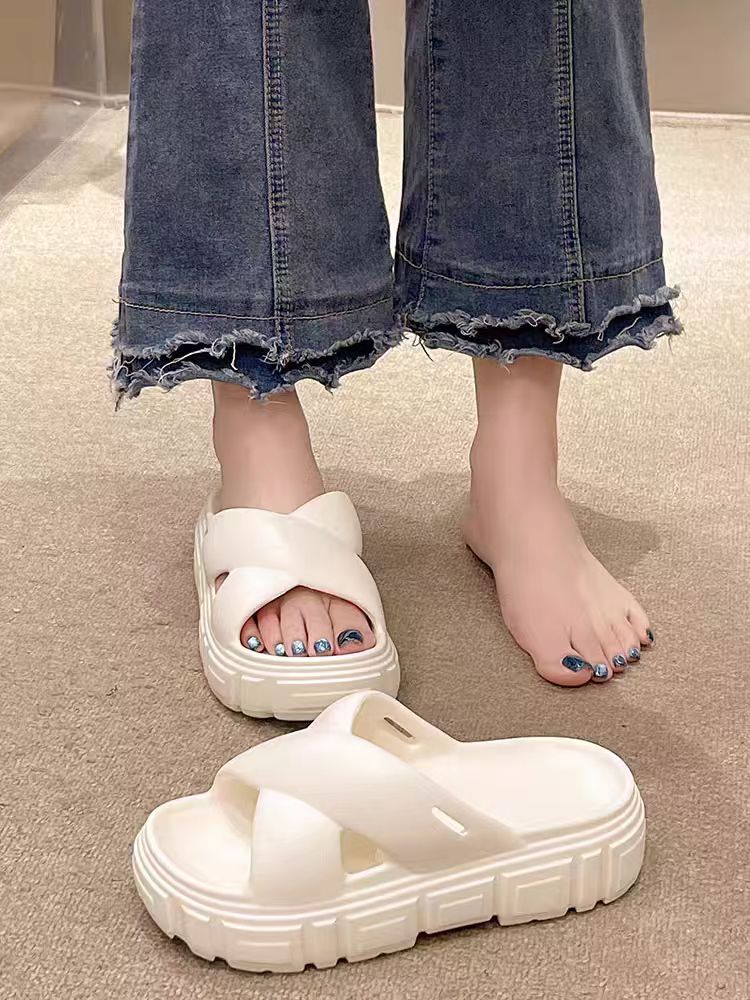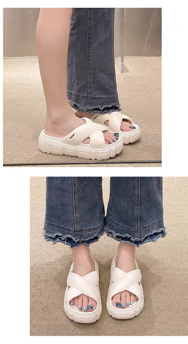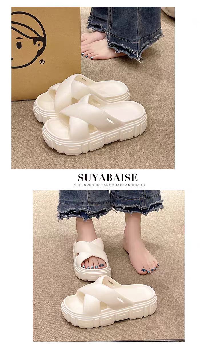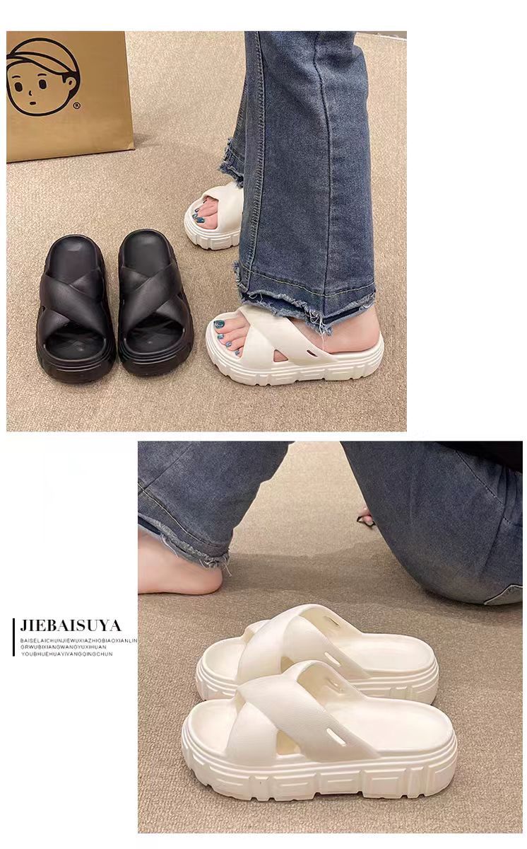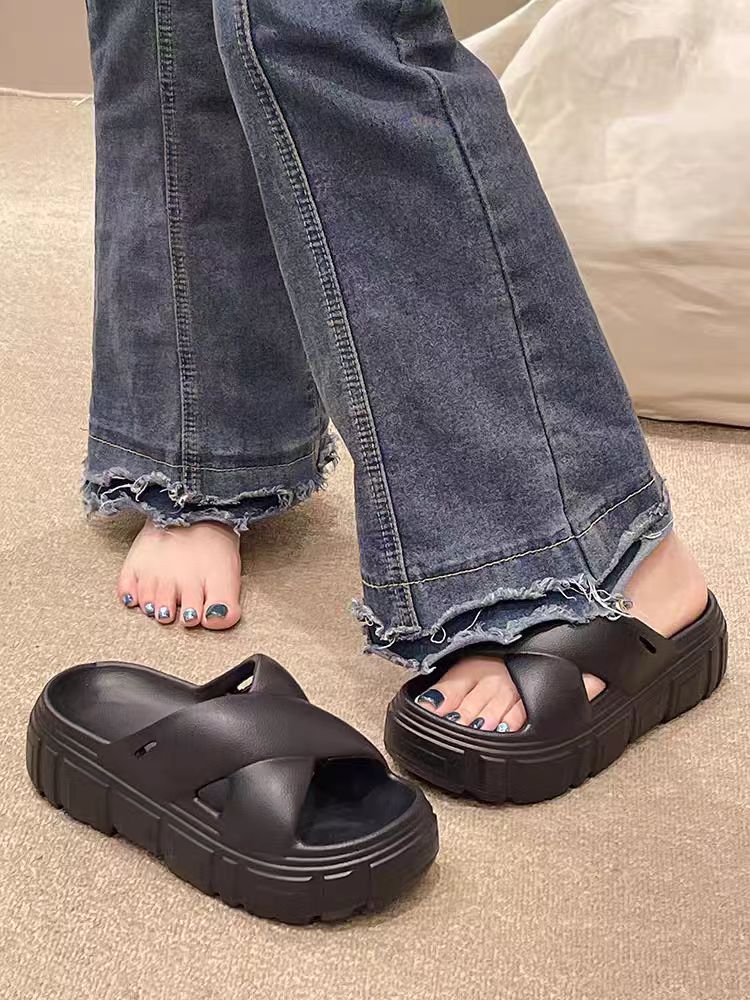 Bulu 항균 및 탈취 슬리퍼 크로스 두꺼운 밑창 플랫폼 빵 신발 2025 새로운 스타일의 실내 및 실외 착용을위한 패션 슬리퍼스토어 가기