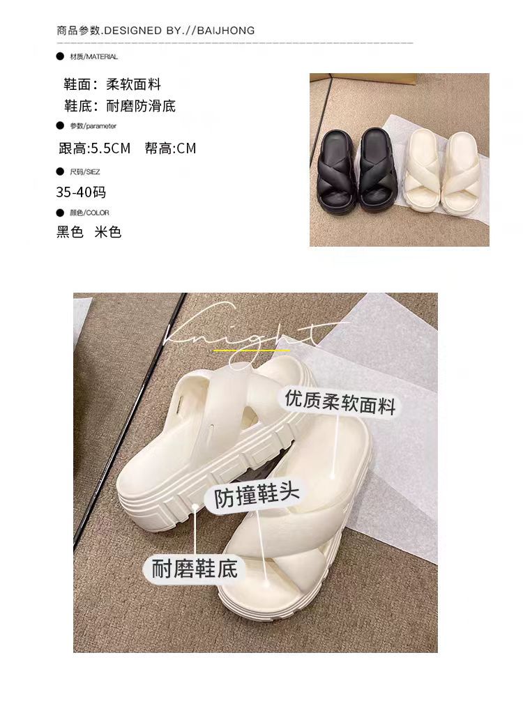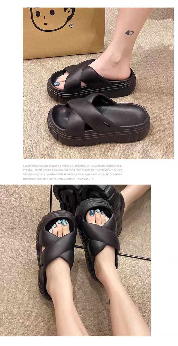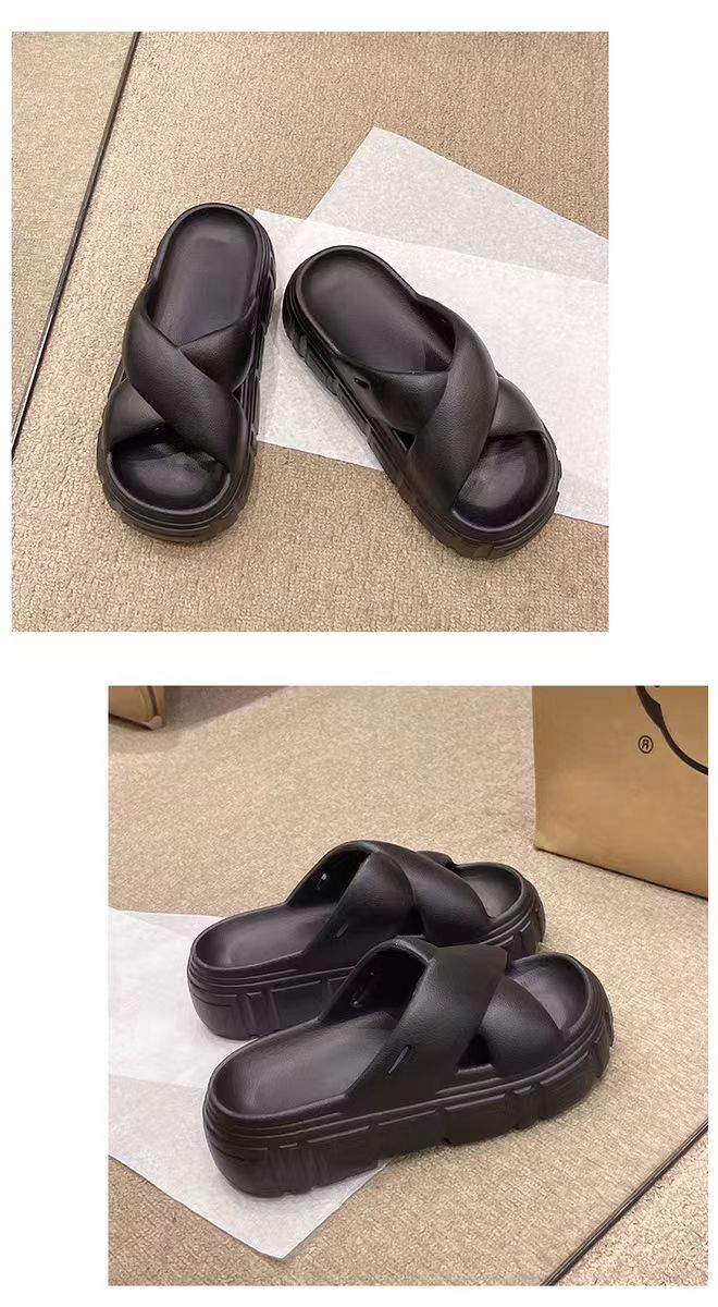 Bulu 항균 및 탈취 슬리퍼 크로스 두꺼운 밑창 플랫폼 빵 신발 2025 새로운 스타일의 실내 및 실외 착용을위한 패션 슬리퍼